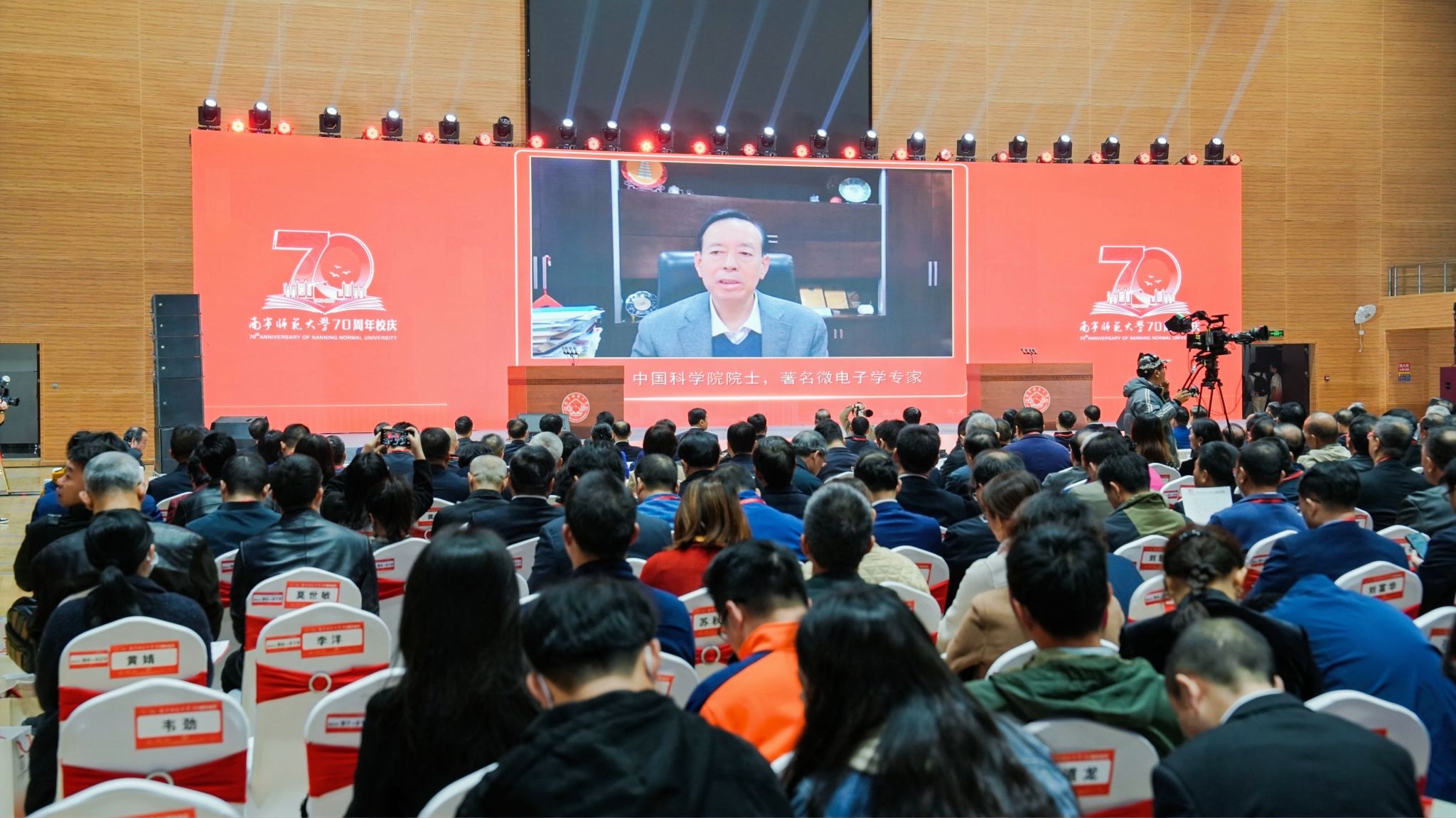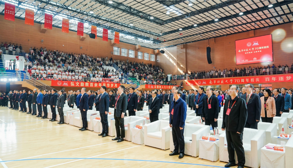 上午9时30分,南宁师范大学建校70周年庆祝大会在庄严的国歌中拉开序幕。