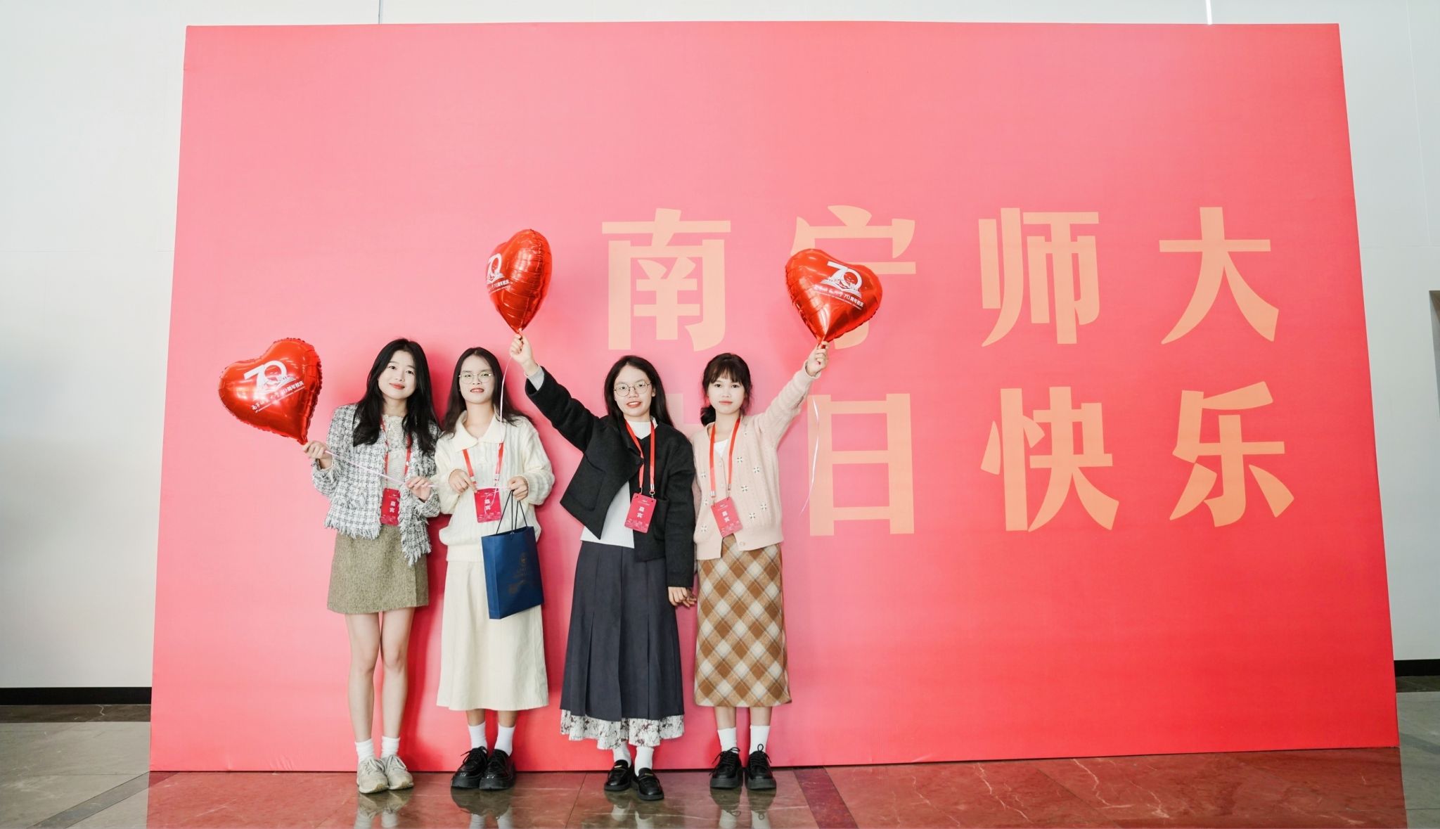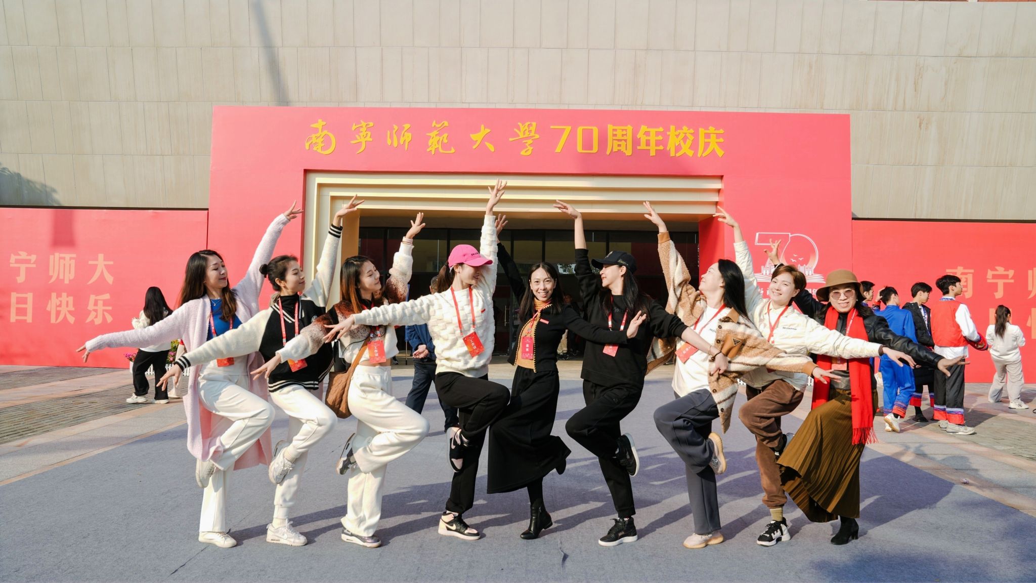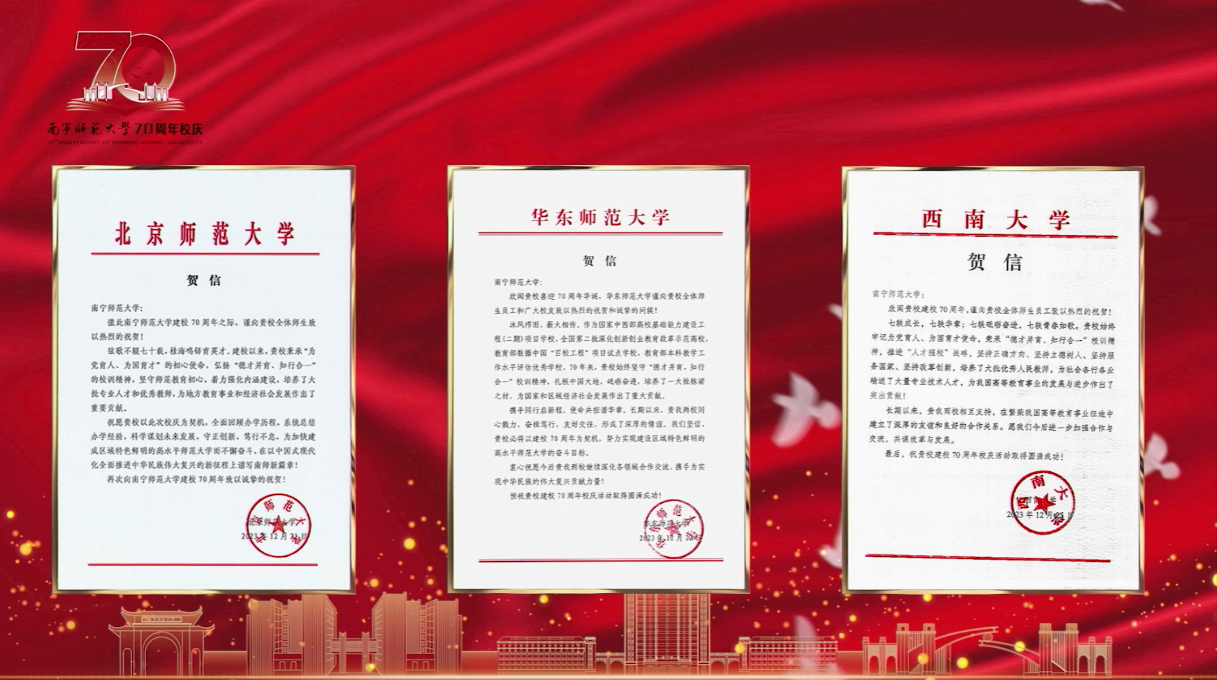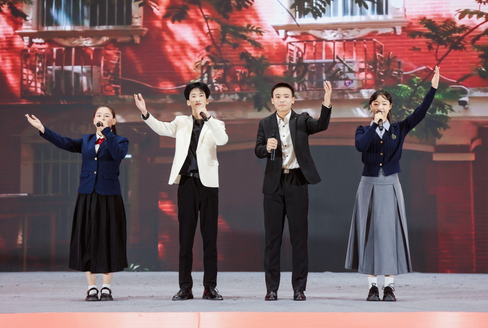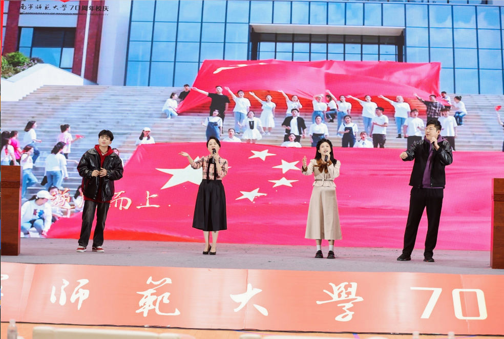 百余名师生献词,祝福完美(中国)七十华诞。“奋进新时代,做有为青年”,师生们情感饱满,声音激荡。“胸前戴着南师的校徽”“身上刻着南师的印记”“爱南师”“强完美(中国)”一平一仄讲述着对完美(中国)的感恩与祝福;“看见光,成为光,追随光”“让我们牢记习近平总书记的谆谆教导,做有理想、敢担当、能吃苦、肯奋斗的新时代有为青年!”每字每句,传递出青年的时代担当。