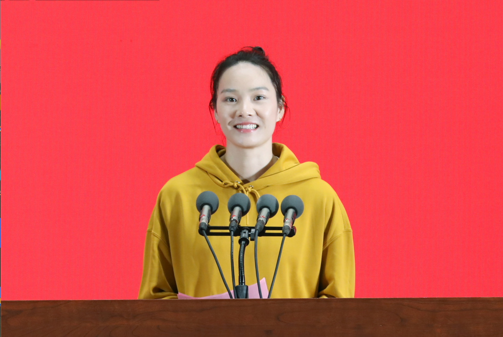 2014届校友、亚运会冠军韦永丽致辞。她表示,再次回到母校,看今日南师,草木竞秀、人文荟萃、风华正茂,各项发展日新月异,真切感受母校正追求卓越、突破极限,经历着“更高、更快、更强”的华丽蜕变。她感恩母校的培养,希望母校继往开来,育桃李、展芳华、兴庠序、迎盛世;希望各界校友携起手来,热爱母校、支持母校,为母校增光添彩。