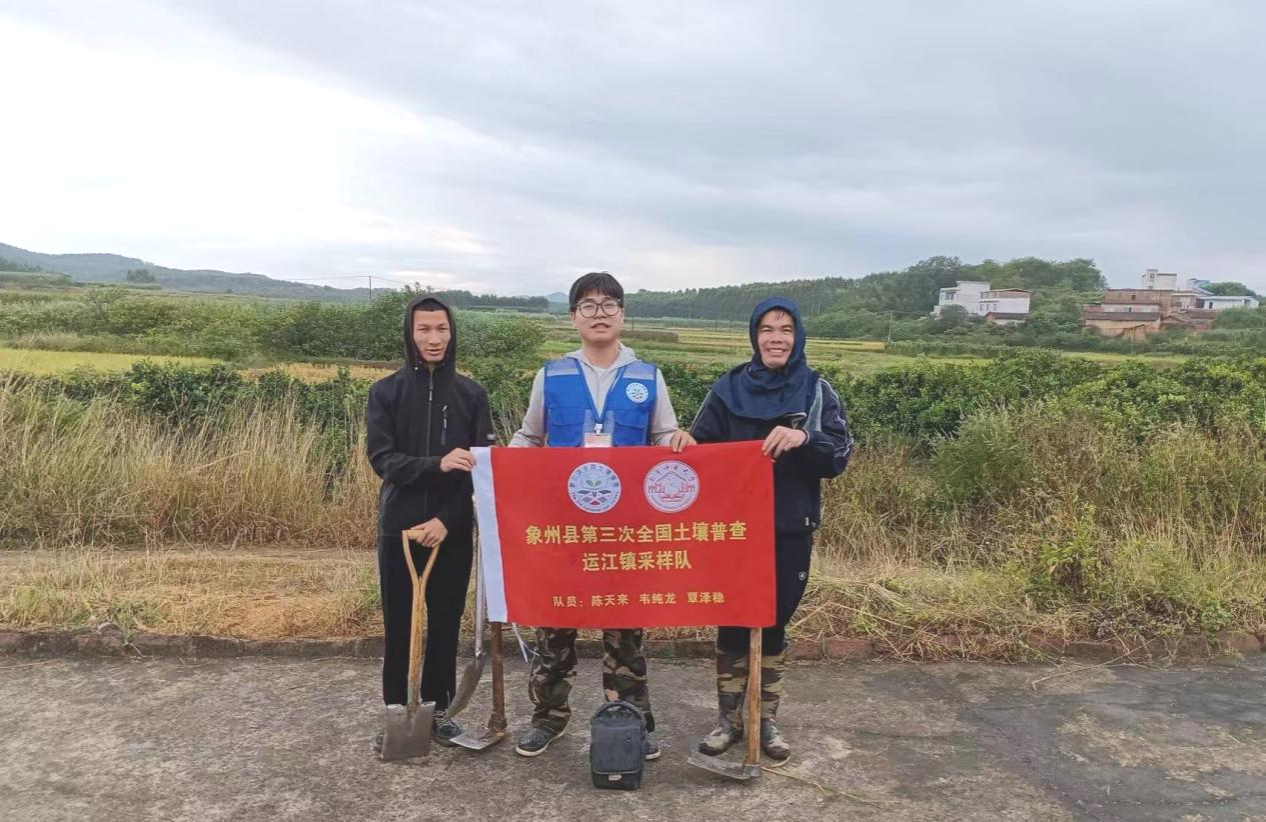 我校于2023年8月承接了象州县第三次土壤普查表层土外业采样工作,项目组高度重视,9月5号邀请区三普办专家在象州县开展了第三次土壤普查外业技术培训和试点采样。张新英教授作为项目负责人,积极落实采样工作,以环境与生命科学学院为主的技术力量与象州县各乡镇人员共同组建了11个采样小组,县三普办也迅速抽调人员成立了平台质控小组,各技术领队团结乡镇农技人员,与劳务人员一起,形成了一支支富有战斗力的队伍,在实践中按照国家技术规范和质控要求,不断提升采能技能,积极与平台质控人员磨合。县三普办协调乡镇农技人员配合开展工作,技术负责人李桂山高级农艺师严把质量关,为高质量高效率完成“三普”工作打下坚实基础。