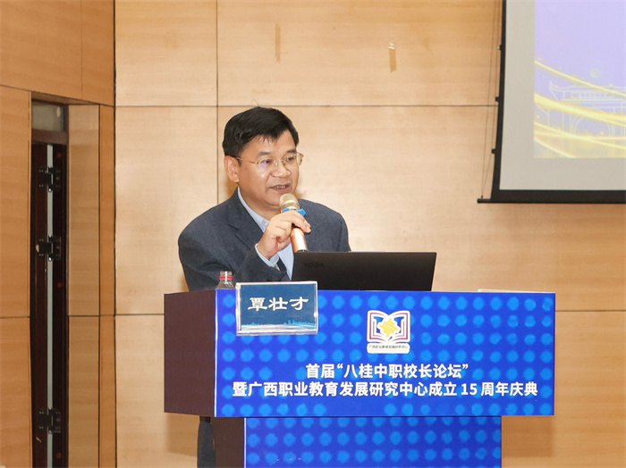 ▲自治区教育厅职业教育与成人教育处处长覃壮才讲话