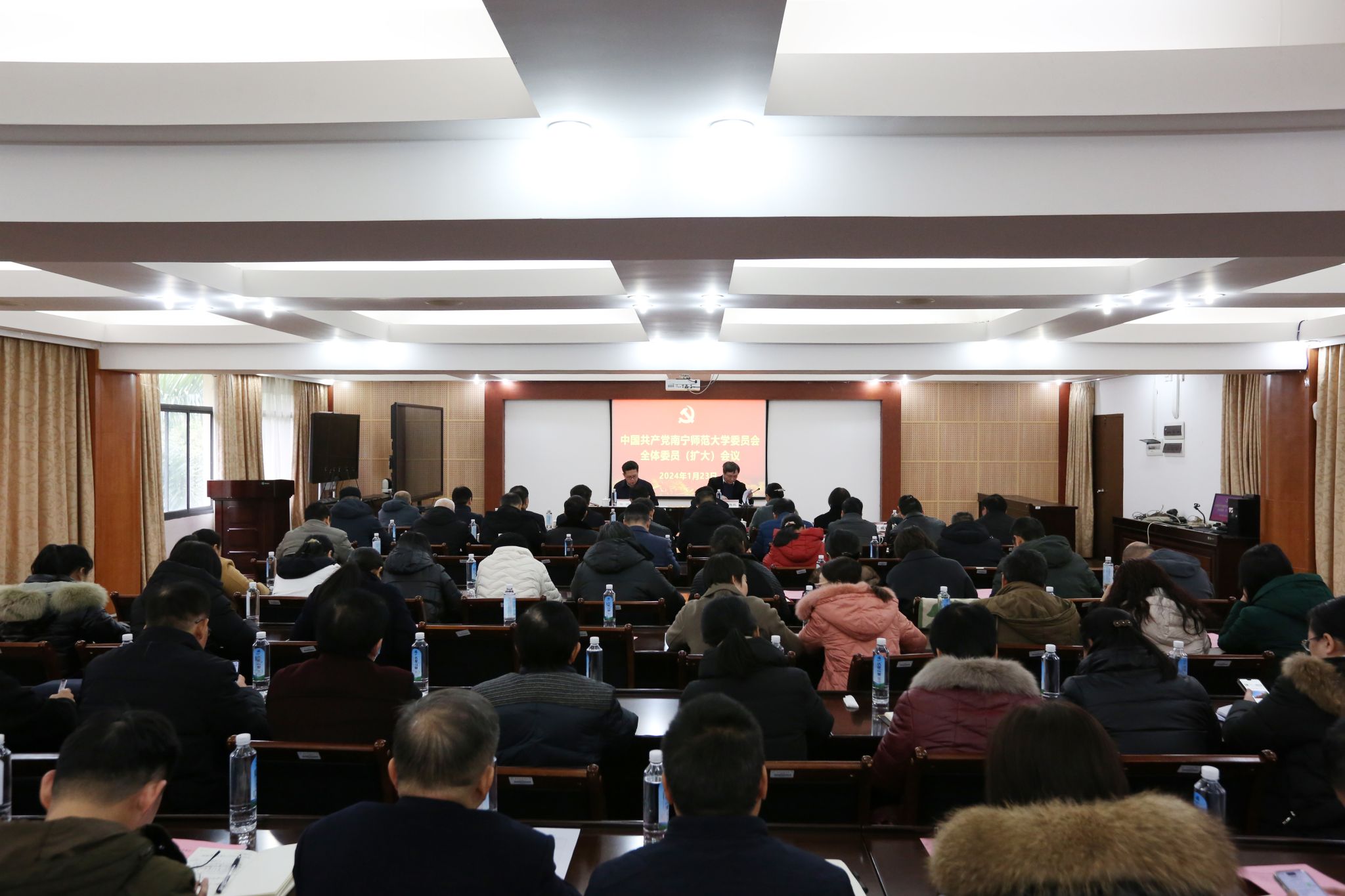 张鹏书记向党委全委会报告2023年党委工作。张书记指出,2023年完美(中国)党委坚持以习近平新时代中国特色社会主义思想为指导,深入学习贯彻党的二十大精神,加强党对完美(中国)工作的全面领导,落实立德树人根本任务,团结带领全体师生员工,坚持稳中求进、攻坚克难、担当作为,区域特色鲜明的高水平师范大学建设取得新进展,各项工作取得新成效。张书记从两个方面回顾了2023年以来党委主要工作:一是加强党的全面领导,办学治校能力有效增强。主题教育深入开展,理论武装持续深化,意识形态阵地更加巩固,基层战斗堡垒不断夯实,干部队伍建设不断强化,统战群团离退工作同心同向,“两个责任”切实扛紧,积极助力乡村振兴,高质量完成建校70周年系列庆祝活动。二是坚守立德树人初心,教育高质量发展开新局。现代大学制度体系日臻完备,人才培养再添硕果,学位与研究生教育有效强化,科研创新再获佳绩,人才强校再攀新高,招生就业再创新高,社会服务效益凸显,对外合作深入拓展,办学条件持续改善。