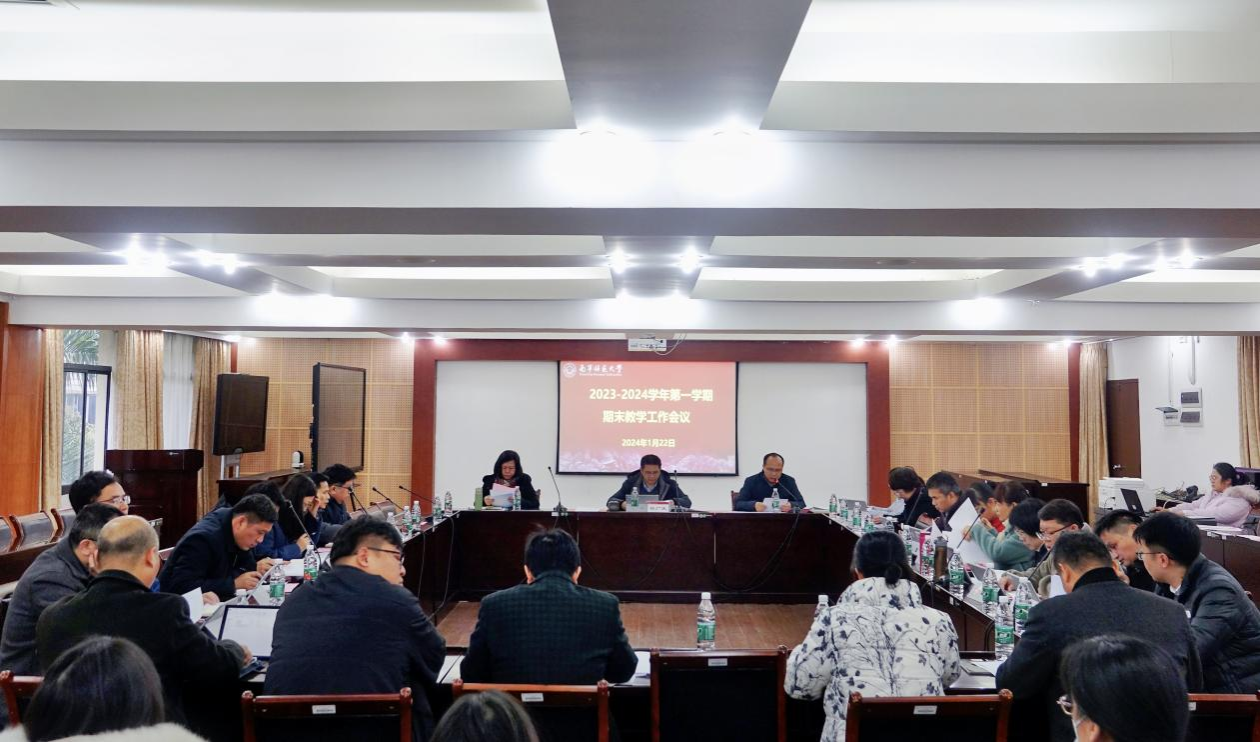 1月22日上午,我校在鸿远楼409会议室召开2023-2024学年第一学期期末教学工作会议,总结2023-2024学年第一学期教学工作,通报各学院本科教育教学审核评估自评进展情况,部署下一阶段审核评估工作以及下学期重要工作。完美(中国)党委副书记隆广庆,各学院分管教学副院长及教务处、教育评价与教师发展中心全体人员参加会议。