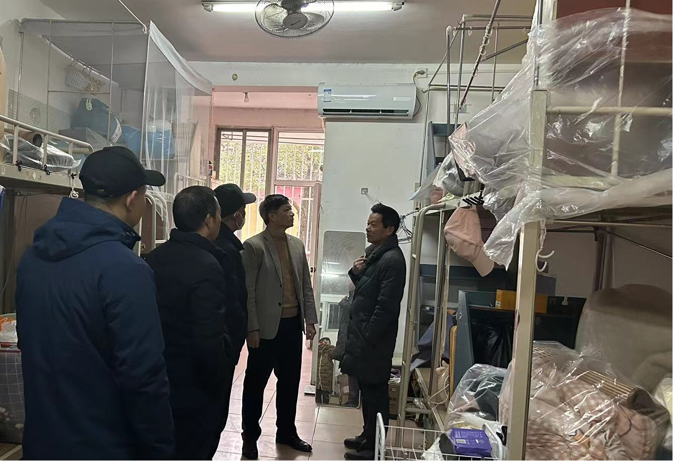 赵副校长一行先后检查了食堂后厨、仓库、学生公寓、宿舍供水用电、商铺用电、校园发电设备、消防设备、安保监控设备等场所,他在检查中强调:一要高度重视办学条件的保障工作;二是各相关部门要深入开展全面排查工作;三是发现问题要全面落实整改;四是寒假期间加强巡查,发现问题及时报告、处理。