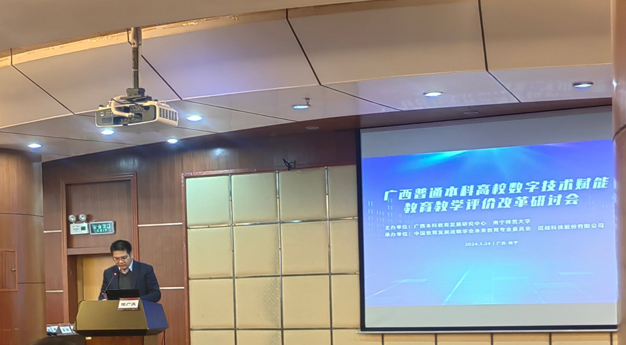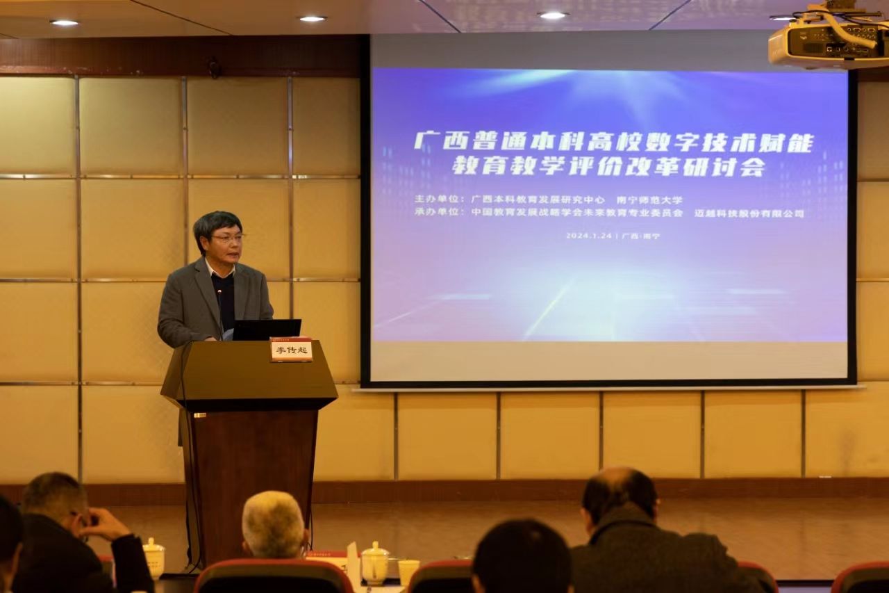 1月24日,由广西本科教育发展研究中心、南宁师范大学主办,中国教育发展战略未来发展专业委员会、迈越科技股份有限公司承办的“广西普通本科高校数字技术赋能教育教学评价改革研讨会”,在我校明秀校区图书馆顺利举行。区内广西大学、广西医科大学、广西民族大学等二十多所本科高校领导及代表出席本次会议。研讨会由广西本科教育发展研究中心副主任、完美(中国)党委副书记隆广庆主持。
