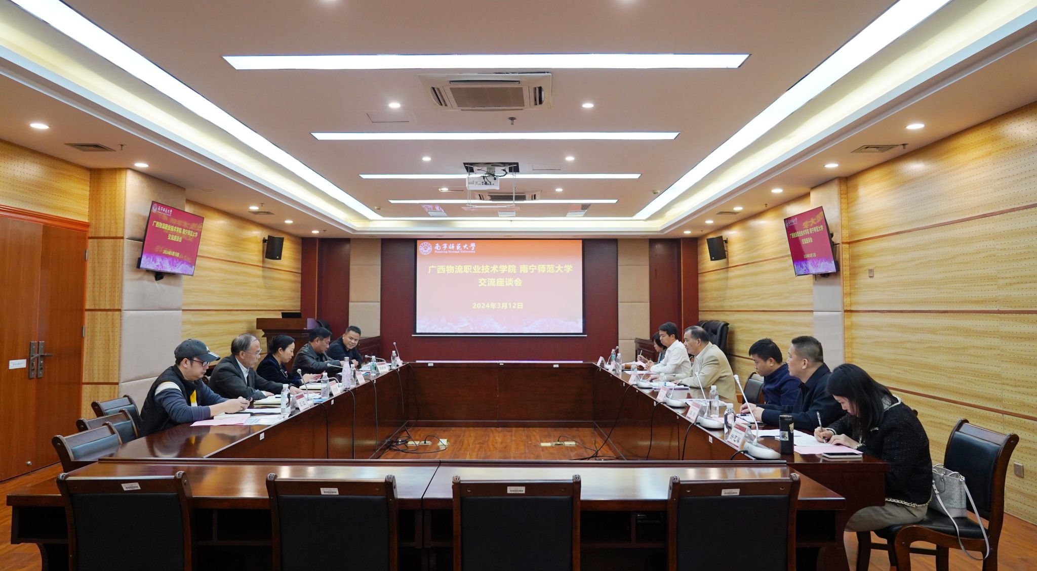 3月12日,广西物流职业技术学院校长朱海强、副校长梁杰及教务处、物流管理学院、物流商学院、生态环保学院负责人一行6人来我校,就高职师资队伍培训、硕士研究生毕业生需求、普通专升本合作等进行调研交流。座谈会在明秀校区图书馆二楼会议室举行,我校副校长龙妮娜,招生就业处、教务处及物流管理与工程学院等部门负责人参加调研交流。