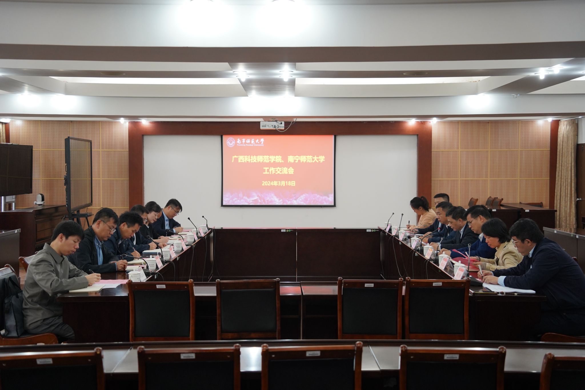 周叮波副校长感谢母校的热情接待,介绍了广西科技师范学院办学历史、发展规划、专业建设和师资队伍建设等情况,重点介绍了广西科技师范学院人事制度改革与探索,希望两校进一步加强交流合作,共同研讨破解地方师范院校发展过程遇到的人事人才共性问题。