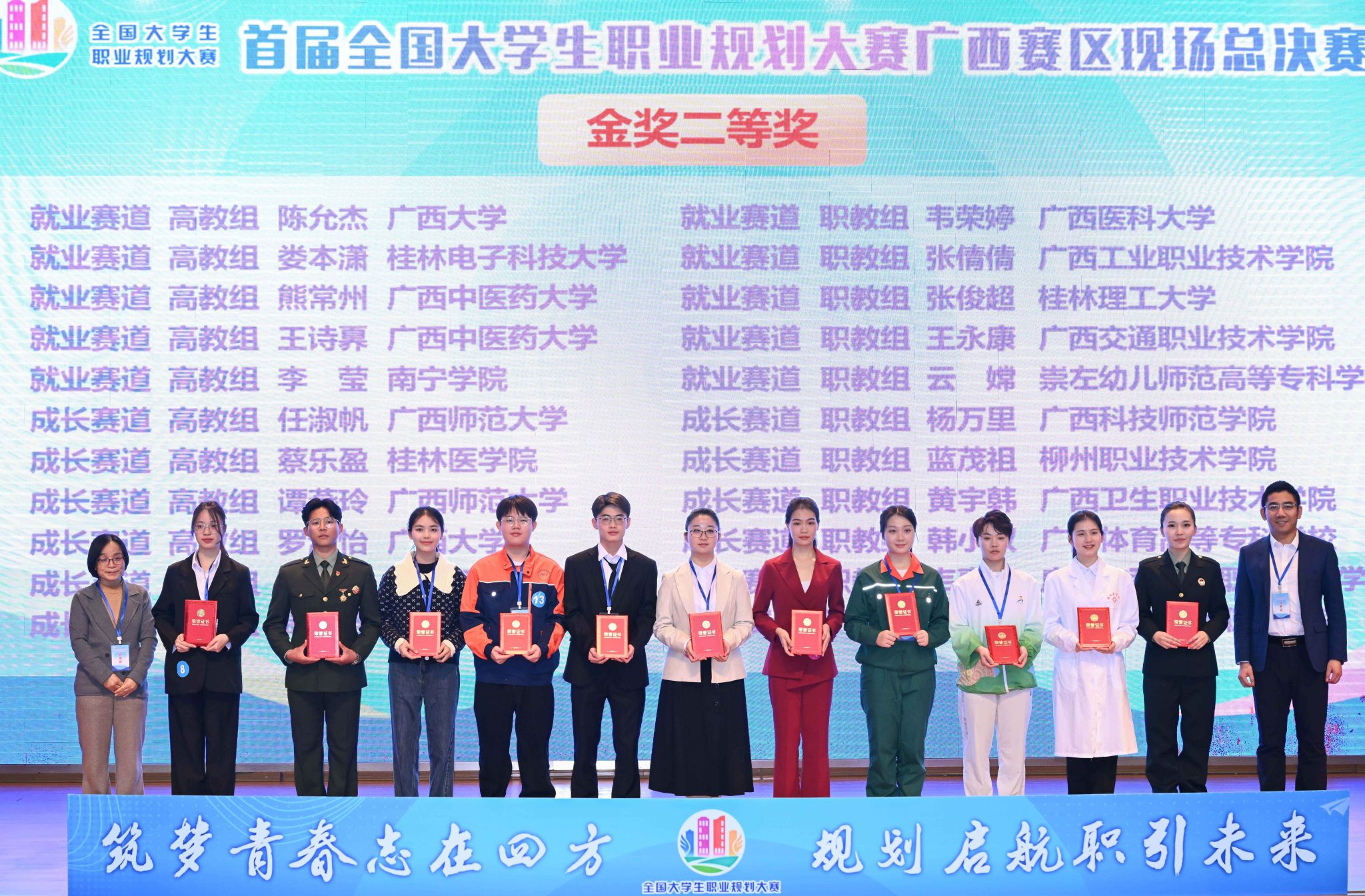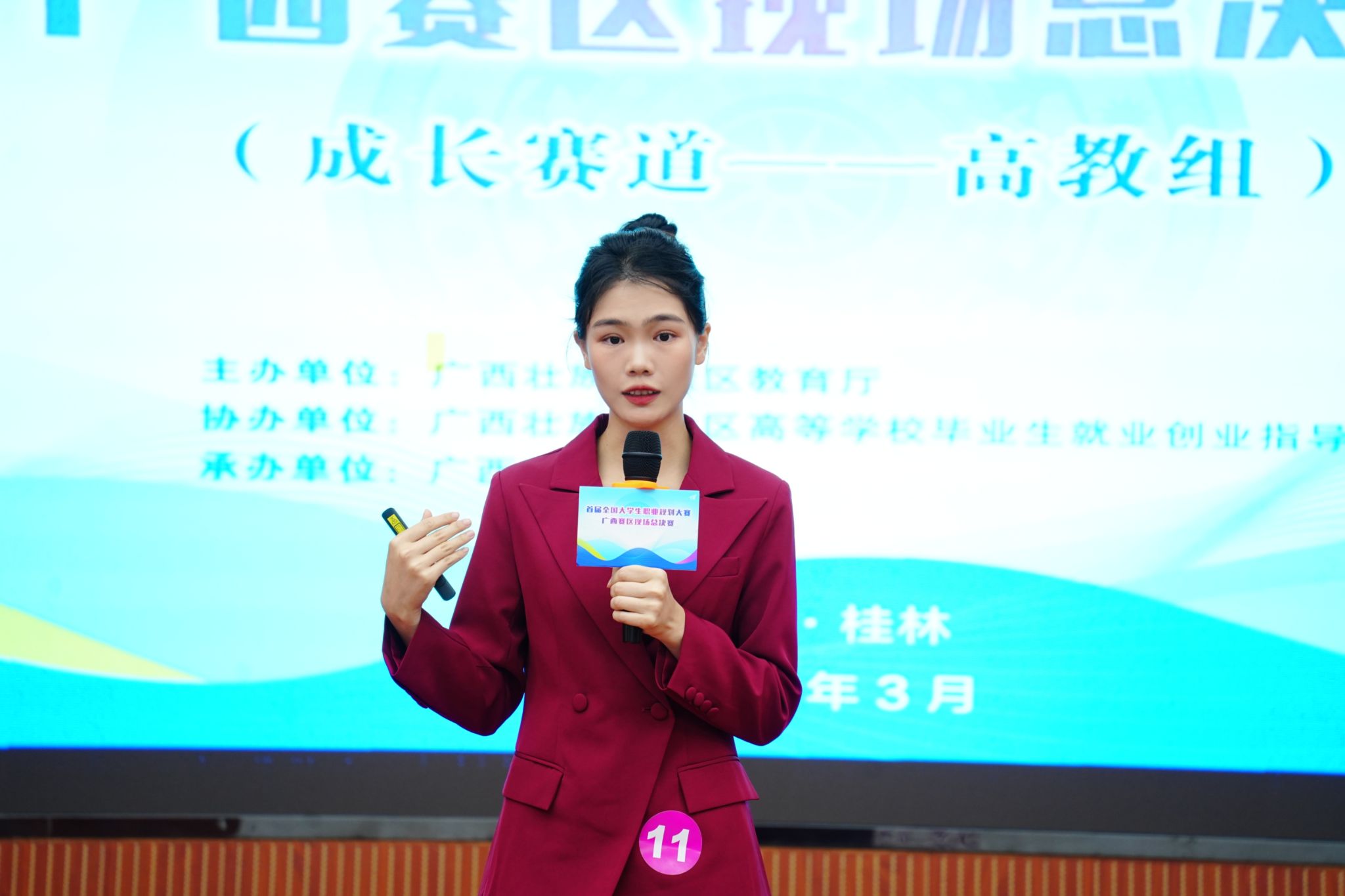 本次大赛以“筑梦青春志在四方,规划起航职引未来”为主题,分为成长赛道与就业赛道,每个赛道设高教组、职教组。来自全区37所高校81名优秀大学生入围现场总决赛。其中经过广西赛区网络复赛的选拔,全区共21名学生进入到广西赛区成长赛道(高教组)的现场总决赛。