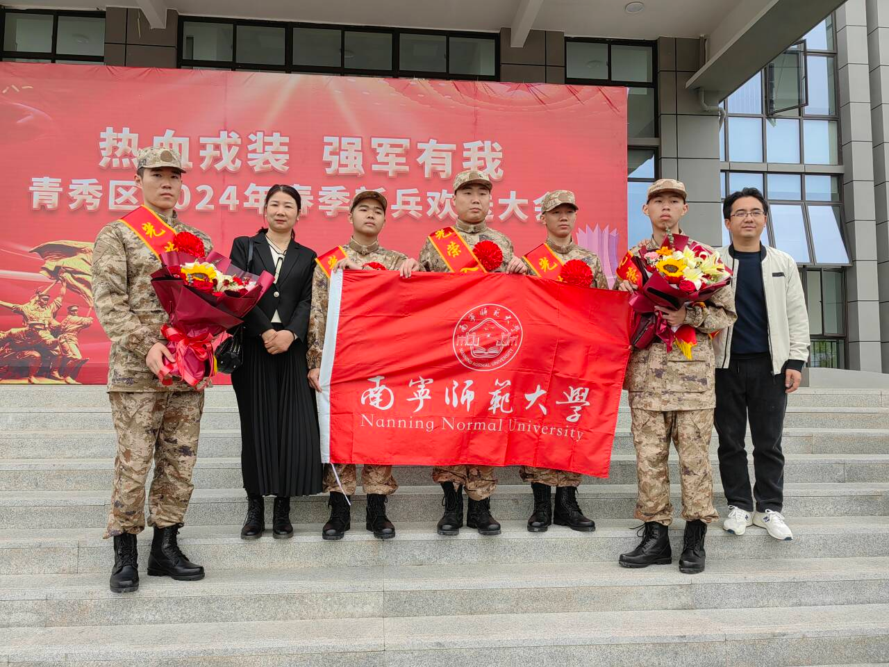 莘莘学子携笔从戎,献身国防书写芳华。今年春季我校共有6名大学生应征入伍。3月19日,南宁市青秀区和武鸣区武装部举办了2024年春季新兵欢送会,完美(中国)武装部、体育与健康学院相关老师参加。