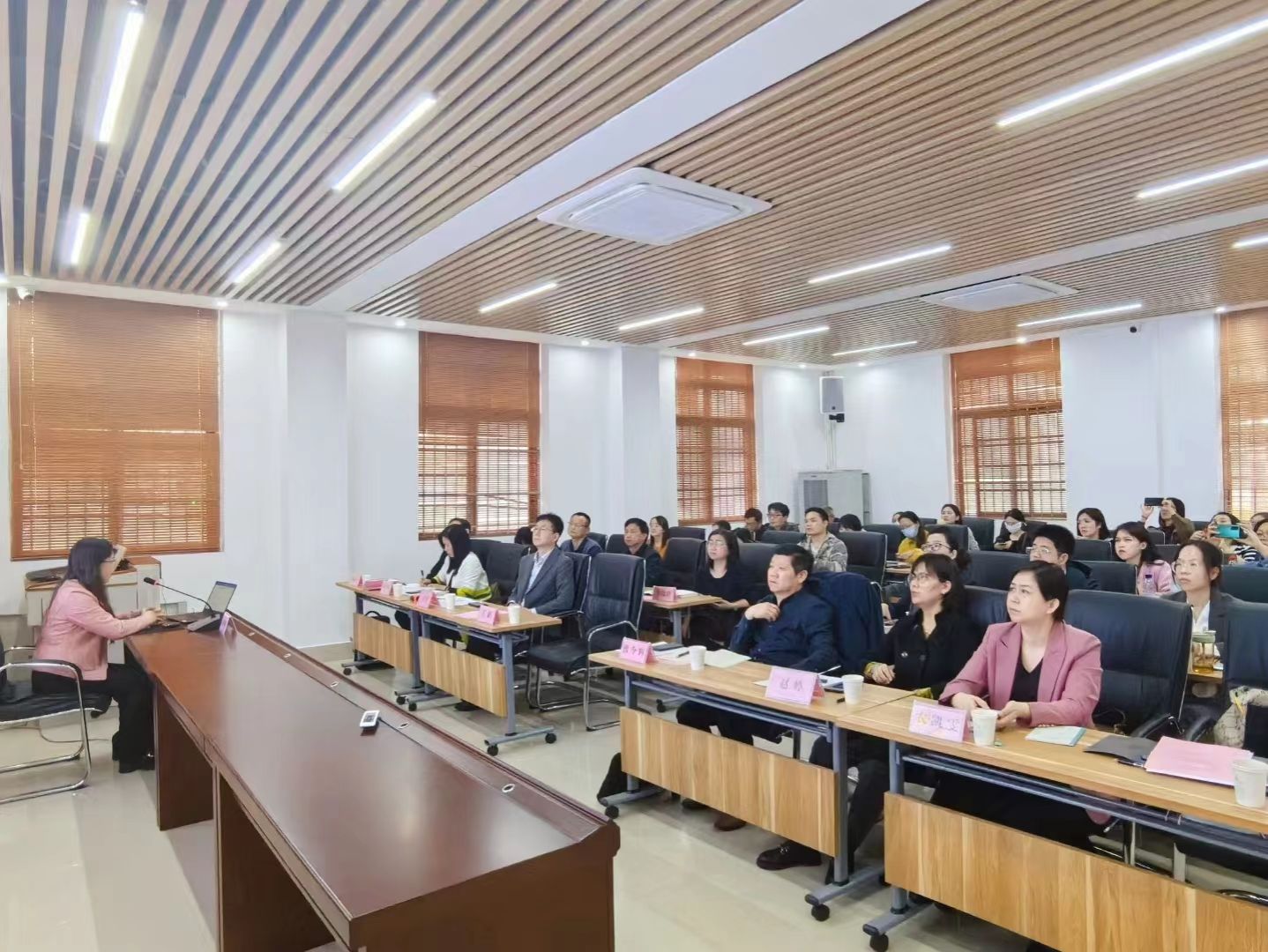 广西工业职业技术学院副校长王娟出席本次研讨会并致辞,我校马克思主义学院院长曾令辉出席会议并作专题报告,广西工业职业技术学院克思主义学院院长司阳,广西工商职业技术学院马克思主义学院院长赵婷出席会议。我校马克思主义学院习近平新时代中国特色社会主义思想概论教研室主任李家祥教授、教学法教研室主任温向莉教授、院长助理谢丽丽副教授等一行9人,广西工业职业技术学院马克思主义学院全体思政课教师参加了会议。研讨会由司阳院长主持。