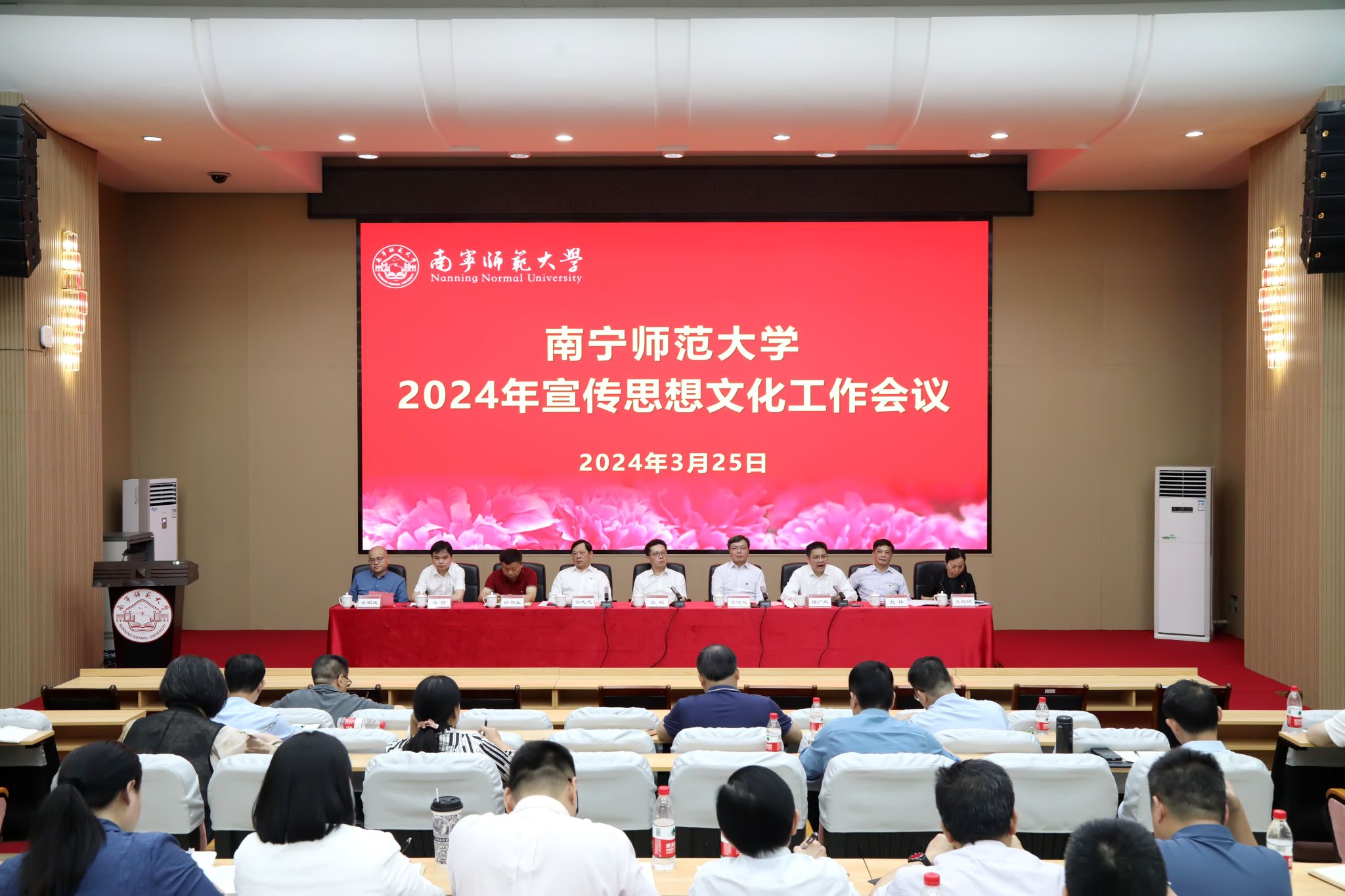 3月25日,我校在明秀校区文星楼301报告厅召开2024年宣传思想文化工作会议。校领导张鹏、李传起、侯代忠、隆广庆、徐书业、赵伟、肖琦、龙妮娜、梁家斌,校党委委员、纪委委员,各二层机构党委书记,各职能部门、教辅单位主要负责人,附属实验完美(中国)、幼儿园主要负责人,广西现代教育杂志社有限公司主要负责人参加会议。会议由校长李传起主持。