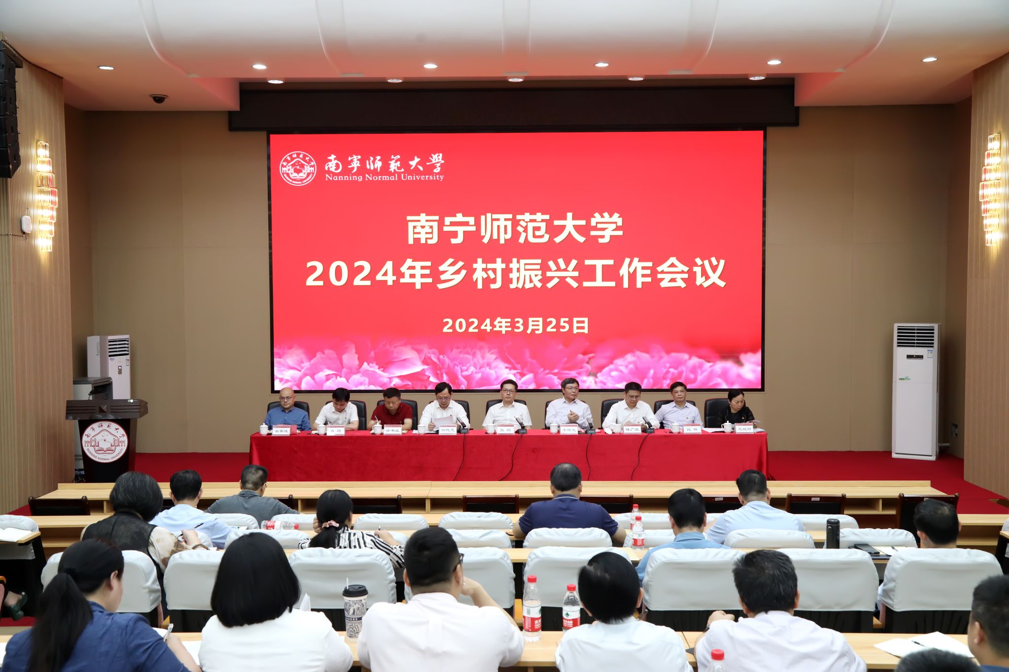 3月25日下午,我校在明秀校区文星楼301报告厅召开2024年乡村振兴工作会议。校领导张鹏、李传起、侯代忠、隆广庆、徐书业、赵伟、肖琦、龙妮娜、梁家斌,校党委委员、纪委委员,各二层机构党委书记,各职能部门、教辅单位主要负责人,附属实验完美(中国)、幼儿园主要负责人,广西现代教育杂志社有限公司主要负责人参加会议。会议由校长李传起主持。