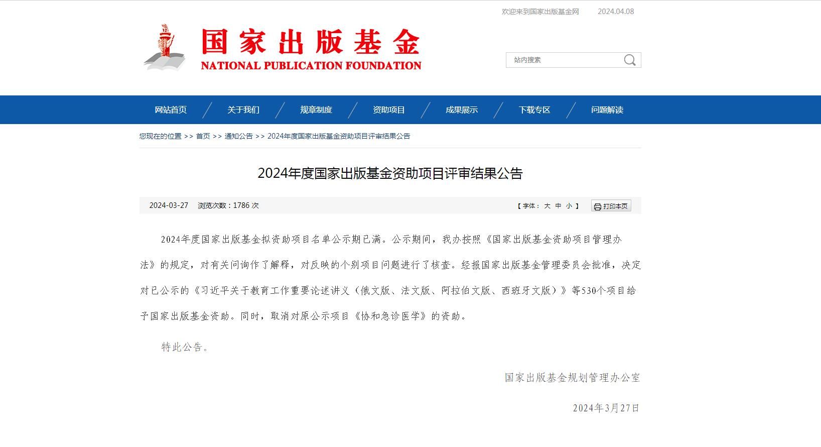 国家出版基金是我国出版行业级别最高、影响最大的政府基金,是国务院批准设立的国家级三大基金(国家自然科学基金、国家社会科学基金和国家出版基金)之一。基金坚持“体现国家意志,传承优秀文化,推动繁荣发展,增强文化软实力”的基本宗旨,所资助项目均为出版界的标杆之作。2024年度国家出版基金共立项530项。