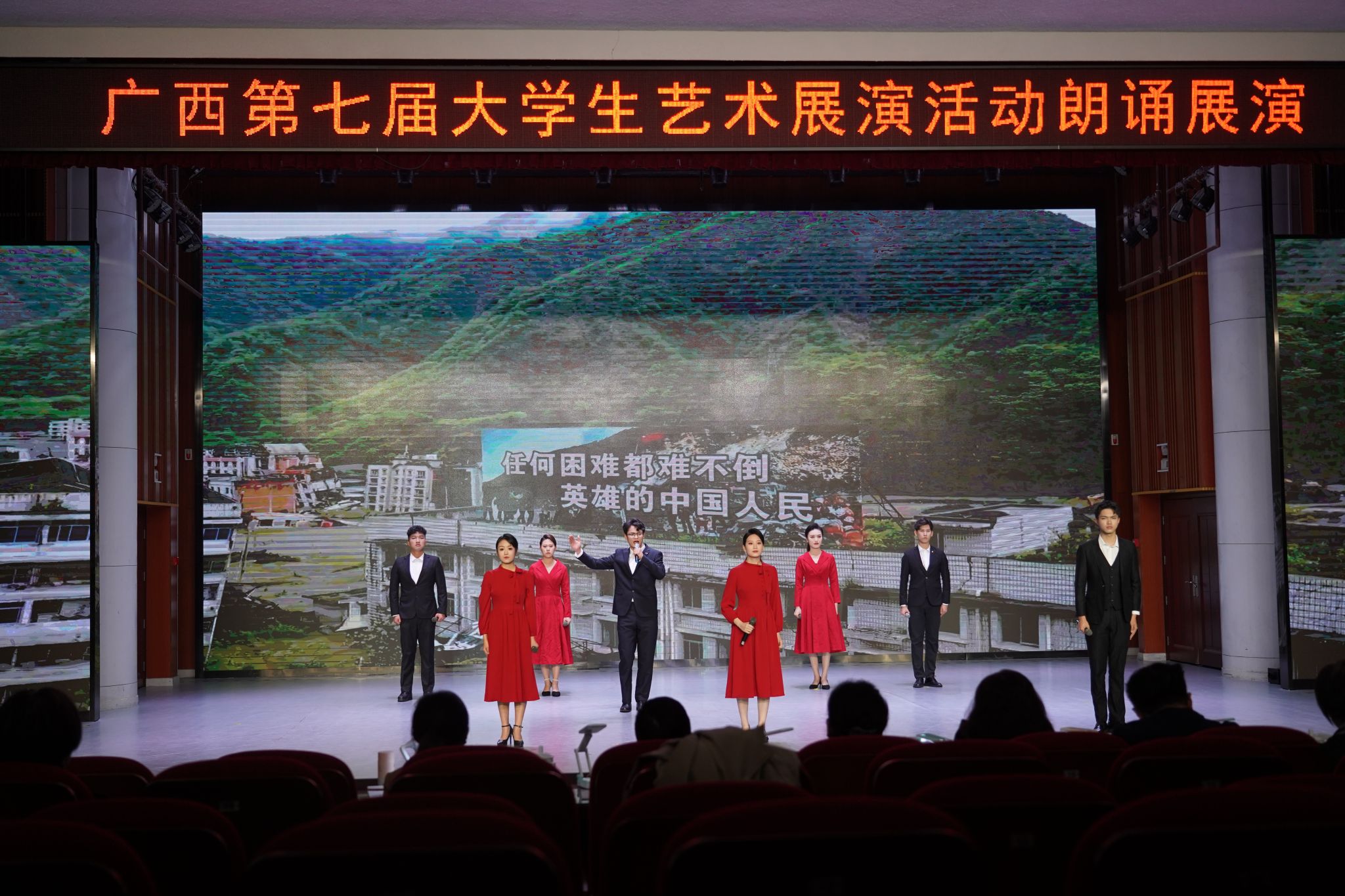 全区大学生艺术展演由广西教育厅主办,每3年举办一次,是广西目前规格最高、规模最大、影响最广的大学生艺术盛会。本届大学生艺术展演活动以“厚植家国情怀,涵养进取品格”为主题,坚持立德树人,坚持面向全体,坚持弘扬中国精神,引领学生坚定文化自信,增强文化自觉,吸引了全区72所高校5000多名参赛选手参加了展演活动,展示了最为靓丽、最有特色的广西高校美育成果。本届展演活动分为艺术表演、艺术作品、大学生艺术实践工作坊和高校美育改革优秀案例四大类,分为甲组(非专业组)和乙组(专业组)。