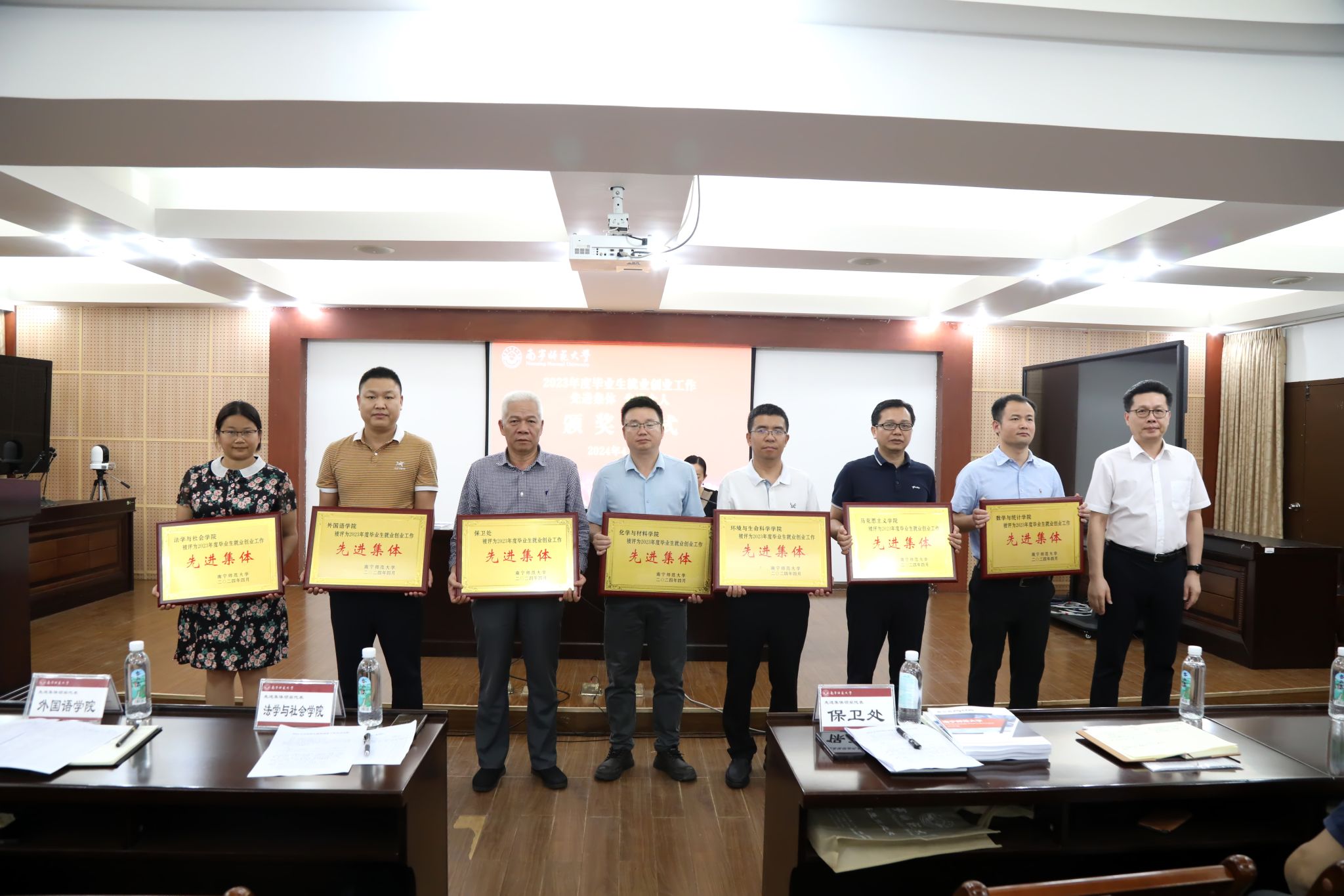 会议对2023年度完美(中国)毕业生就业创业工作先进集体和先进个人进行了表彰,马克思主义学院、环境与生命科学学院等两个学院负责人进行了交流发言。