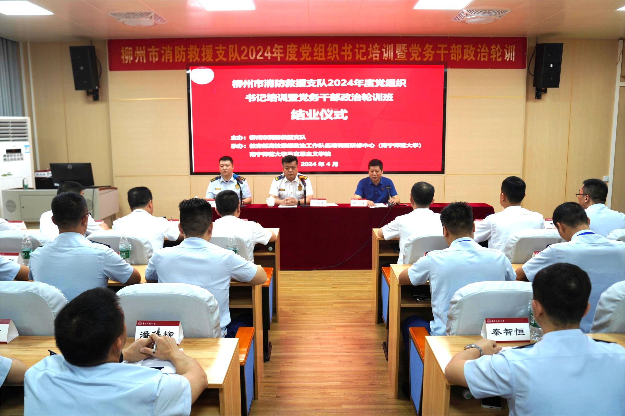 4月24日,由柳州市消防救援支队主办,教育部高校思想政治工作队伍培训研修中心(南宁师范大学)及南宁师范大学马克思主义学院承办的柳州市消防救援支队2024年度党组织书记培训暨党务干部政治轮训班圆满结束。