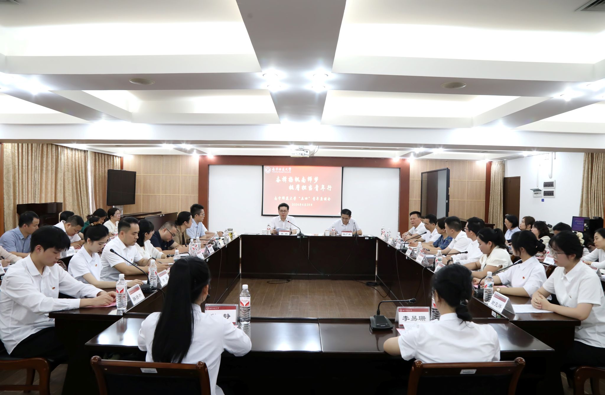 4月28日下午,我校在明秀校区鸿远楼409会议室召开“奋楫扬帆南师梦 挺膺担当青年行”2024年“五四”青年座谈会。校党委张鹏书记、隆广庆副书记与青年教师代表、学生代表齐聚一堂,共话青春梦想,共叙使命担当。座谈会由校党委隆广庆副书记主持。
