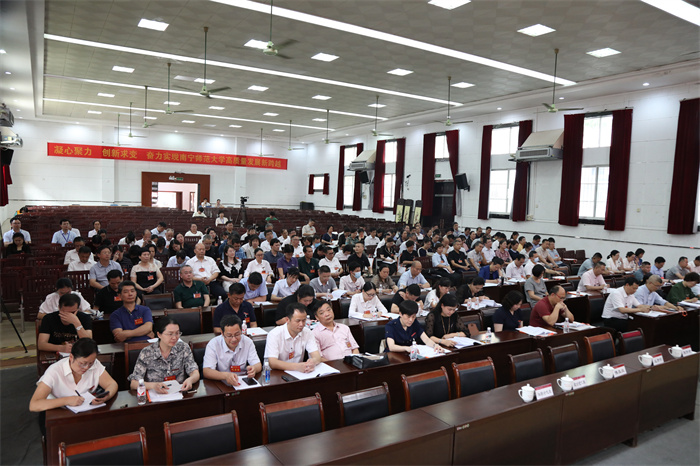 张鹏书记表示,全体教职工要更加紧密地团结在以习近平同志为核心的党中央周围,坚持以习近平新时代中国特色社会主义思想为指导,紧紧围绕中国式现代化全面推进强国建设、民族复兴伟业这个最大政治,聚焦“教育强国、南师何为”这个时代课题,以实际行动奋力书写壮美广西建设的南师篇章,以优异成绩向新中国成立75周年献礼。