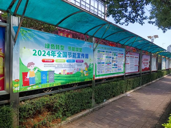 5月12日,制作2024年“节能宣传周”橱窗、展板、横幅等宣传媒介,在各校区悬挂、张贴,营造良好的节能宣传氛围。