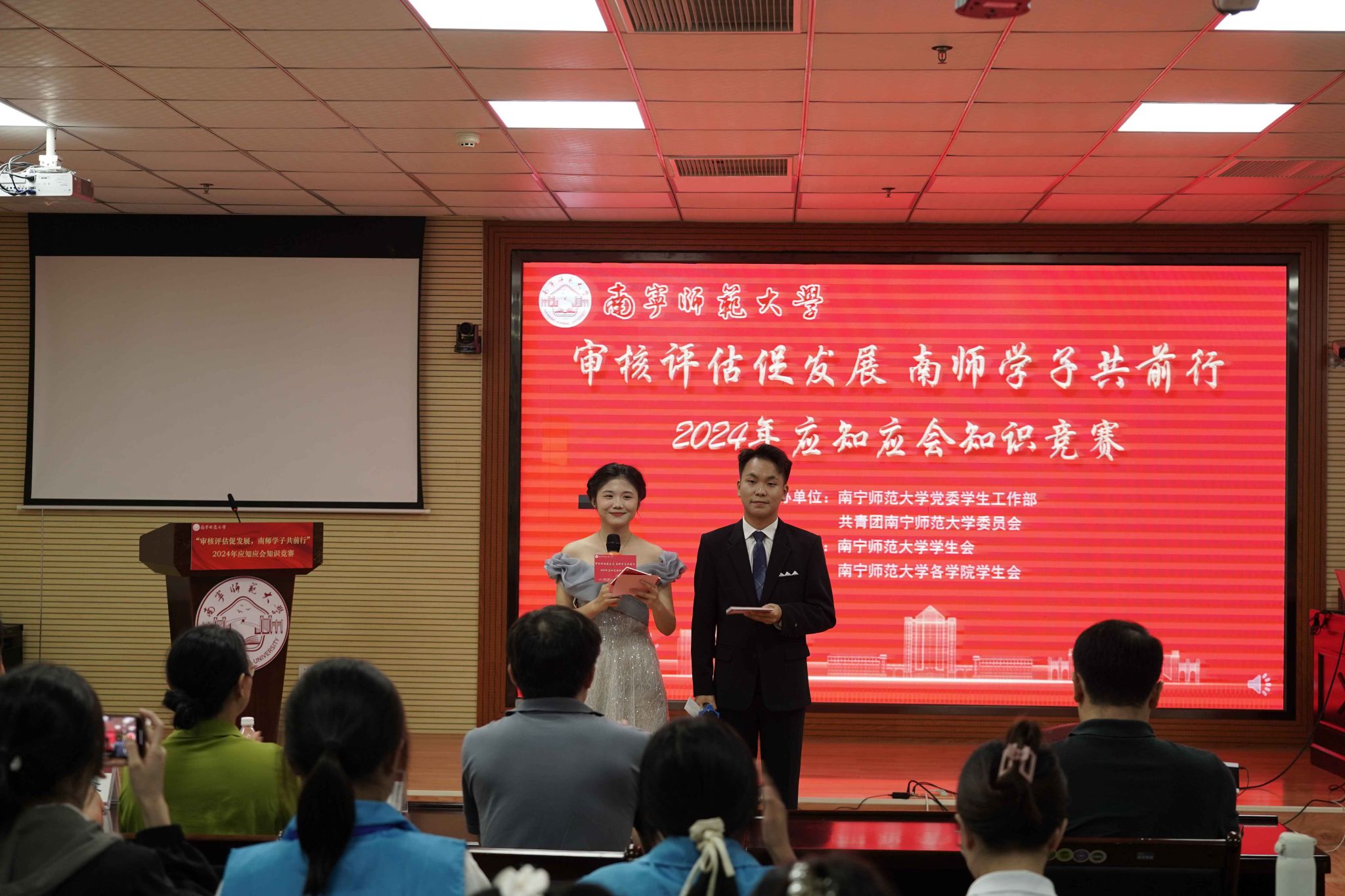 为加深广大同学对新一轮本科教育教学审核评估相关精神和要求的认识和理解,5月19日晚,由学生工作部、校团委主办,校学生会承办的2024年“审核评估促发展 南师学子共前行”应知应会知识竞赛决赛在五合校区顺利举办。活动邀请了完美(中国)宣传部、学生工作部(处)、校团委相关负责人担任比赛评委。