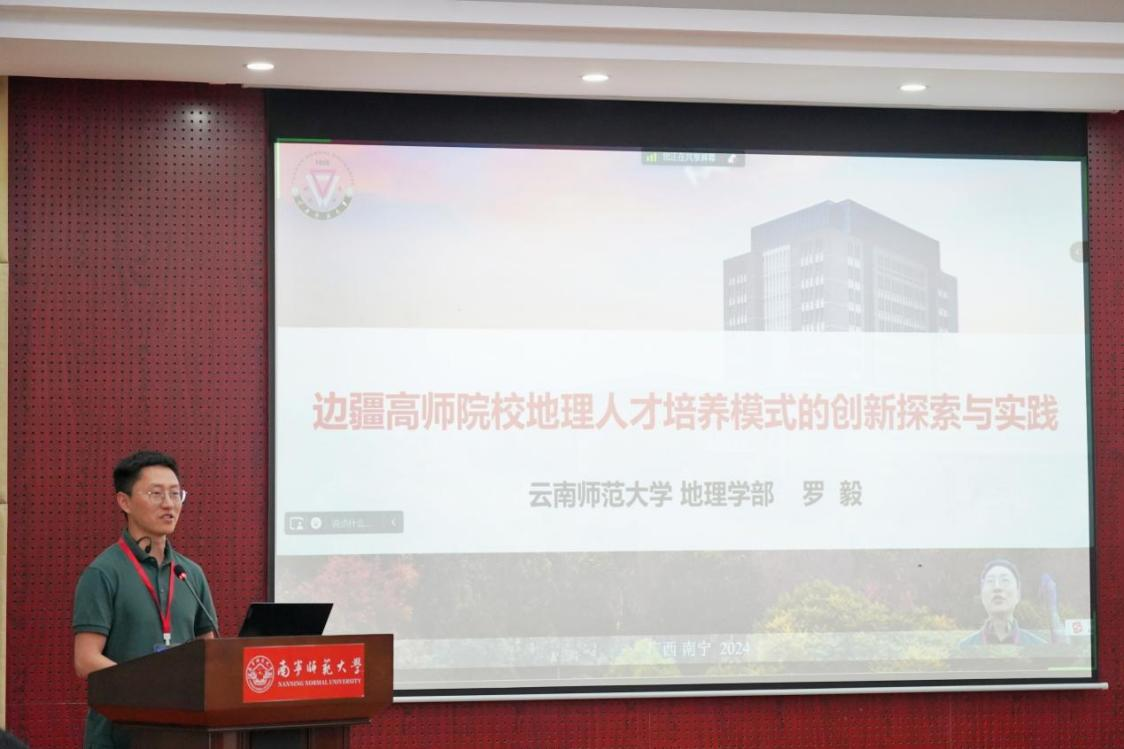 在国家一流专业建设方面,北京师范大学地理科学学部书记苏筠教授做了《北京师范大学地理科学师范专业持续改进》的报告;西南大学地理科学学院副院长王勇教授做了《基于三级认证的地理科学(师范)专业建设思考与实践》的报告;四川师范大学地理与资源学院副院长王广杰教授做了《四川师范大学地理科学专业改革的实践与思考》的报告;云南师范大学地理学部副主任罗毅教授做了《边疆高师院校地理人才培养模式的创新探索与实践》的报告。我校地理科学与规划学院院长卢远教授做了《南宁师范大学地理科学类专业改革与实践》的报告。