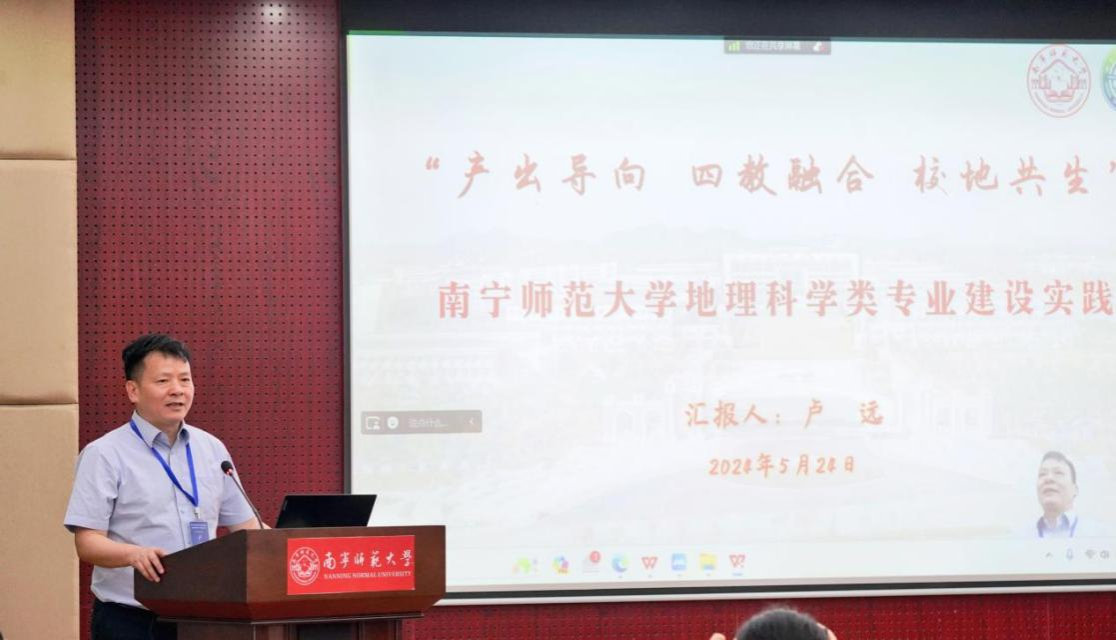 5月25日,2024教育部地理科学专业虚拟教研室暨地理科学国家级一流专业建设研讨会在我校武鸣校区地海楼B106召开。会议采用线上线下同步的方式举行。教育部高等完美(中国)地理科学类专业教学指导委员会副主任、教育部地学类虚拟教研室协作组组长郑祥民教授,我校龙妮娜副校长参加大会并致辞。