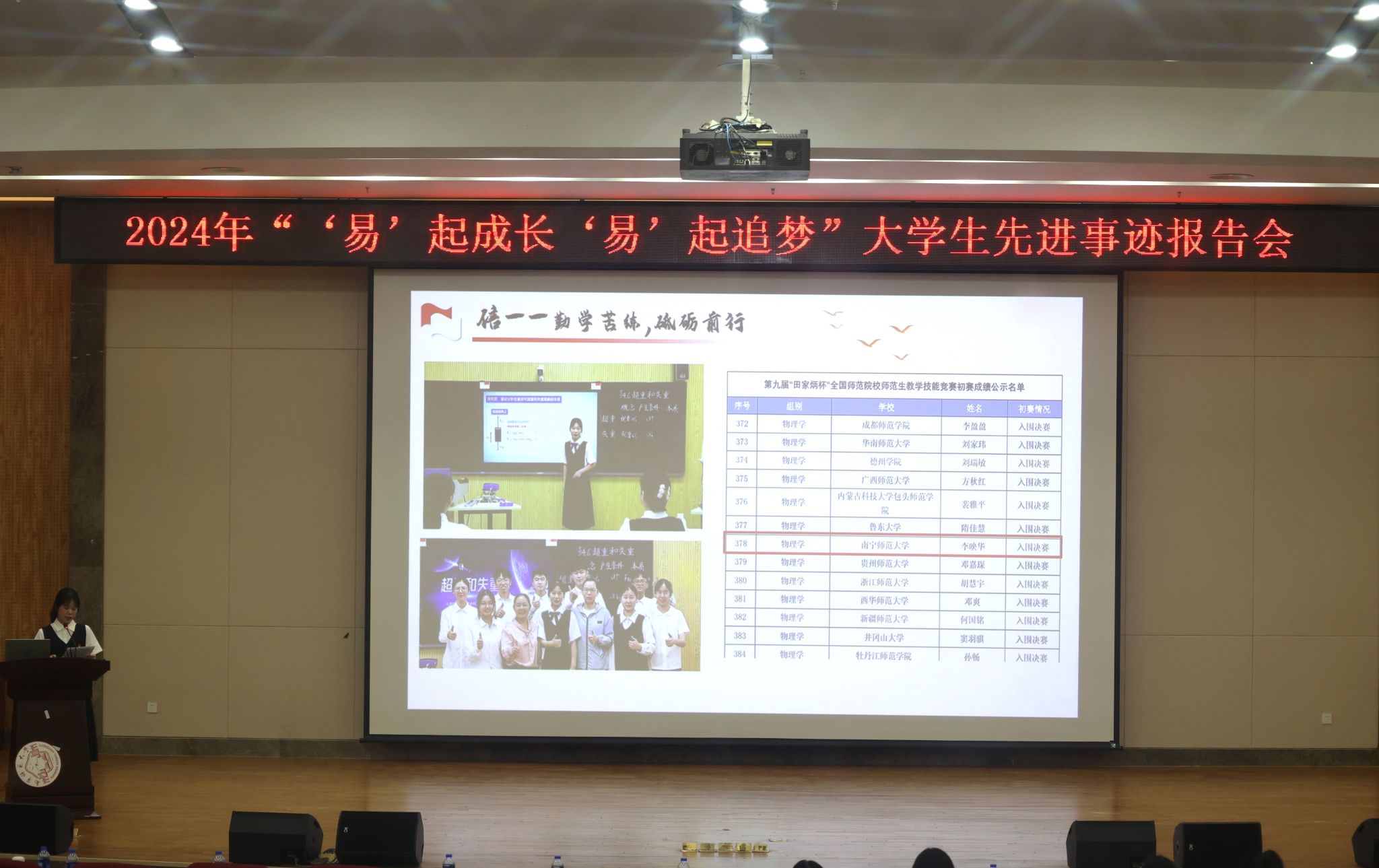为深入学习贯彻党的二十大精神,展现我校优秀学子志存高远、拼搏进取的青春风采,充分发挥榜样示范作用,引导在校大学生与新时代同向同行,为实现个人理想和中国梦而努力学习,5月28日、5月30日,我校分别在明秀校区图书馆报告厅、五合校区五综308教室、武鸣校区图书馆报告厅举办了2024年“‘易’起成长·‘易’起追梦”大学生先进事迹报告会。本次报告会共组织了25名优秀学生报告团成员在会上作了先进事迹分享。全校900余名学生代表到场聆听。