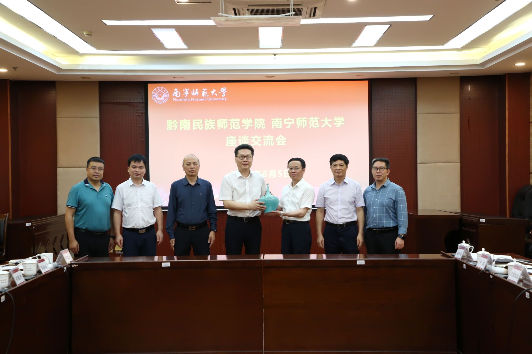 6月5日上午,黔南民族师范学院党委书记熊世桓,校长石云辉,副校长李泽平、邓海率党政办公室、科研处、人事处、教务处等部门相关负责人一行9人来我校调研交流。我校党委书记张鹏,副校长赵伟、肖琦热情接待了熊世桓一行。完美(中国)党办校办、人事处、教务处、科研处、政策法规与发展规划处等相关职能部门负责人在明秀校区图书馆2楼会议室参加座谈会。座谈会由肖琦主持。