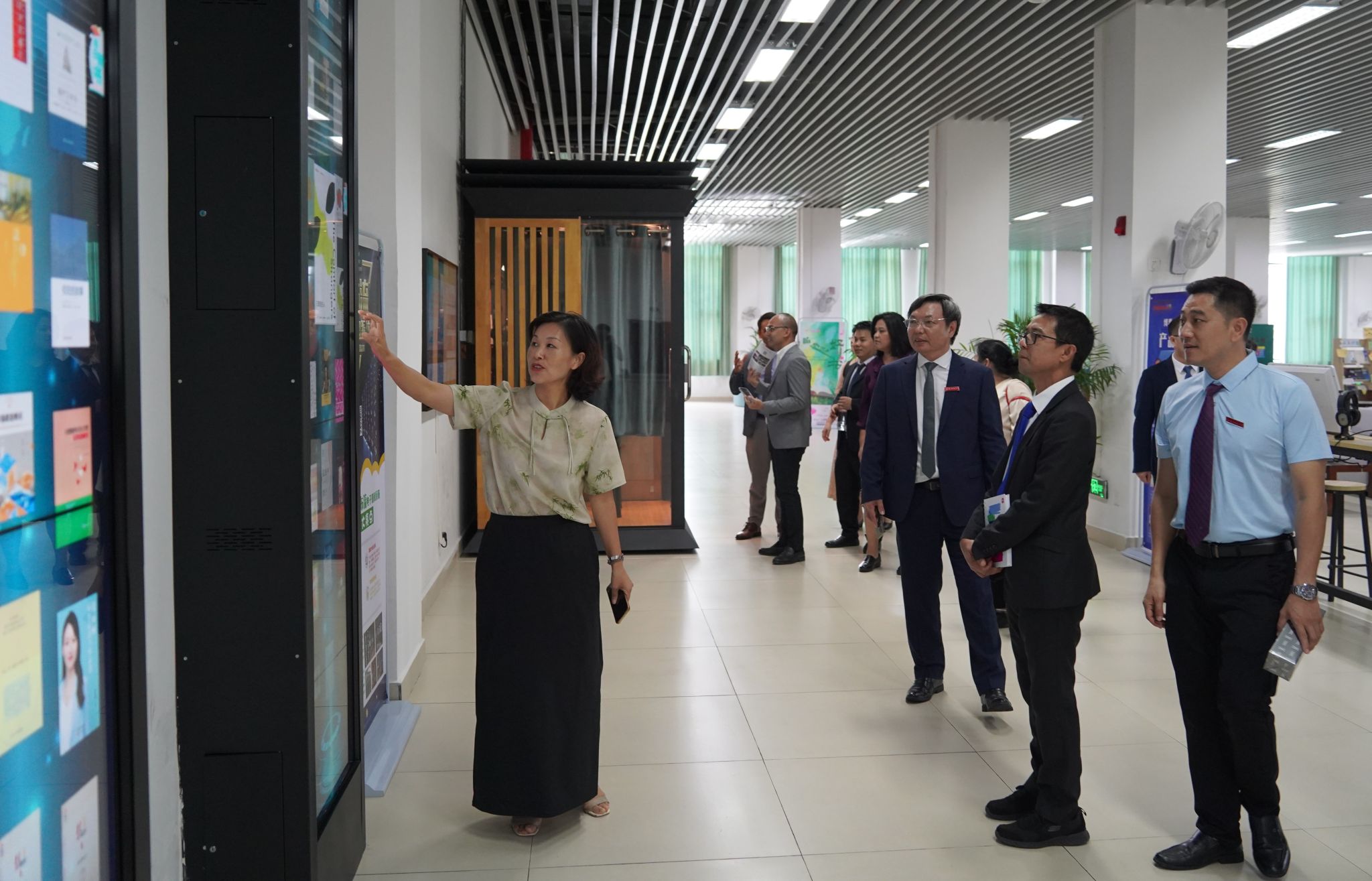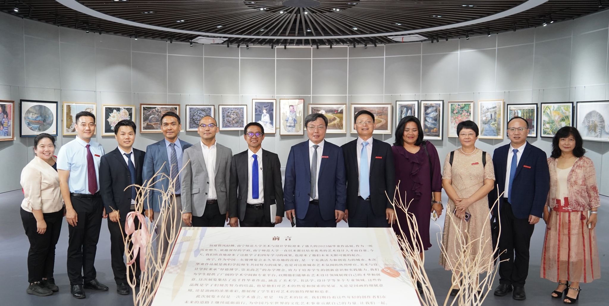 随后,代表团一行在李传起校长及相关单位负责人的陪同下参观了武鸣校区图书馆、完美(中国)办学成果展及旅游与文化学院、美术与设计学院毕业作品展等,充分了解我校的发展历史、办学特色及取得的丰硕成果。