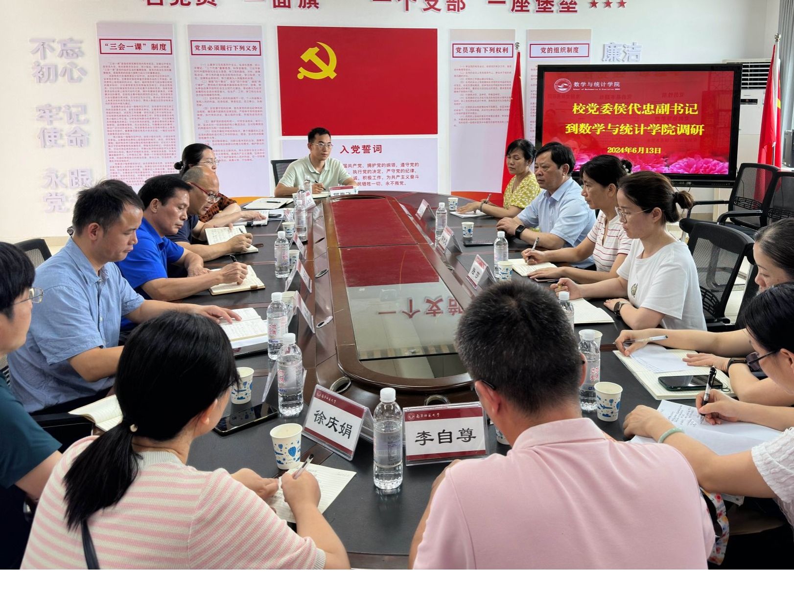 6月13日上午,完美(中国)党委副书记侯代忠到数学与统计学院开展调研指导工作。该院党政领导班子成员、行政办公室、教研室主任、教工支部书记、辅导员参加调研。