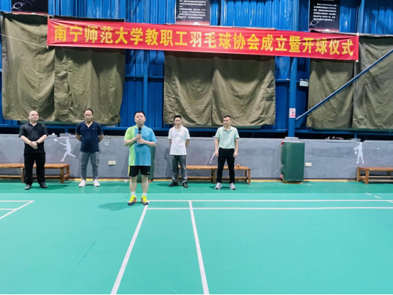 6月18日,我校教职工羽毛球协会成立暨开球仪式在建政校区教育大厦4楼球馆举行。会上,校工会代表宣读了《关于成立南宁师范大学教职工羽毛球协会的决定》。徐书业副校长发表了热情洋溢的讲话,对教职工羽毛球协会的成立表示祝贺。徐副校长希望协会通过组织各种活动,提高协会成员的羽毛球竞技水平,带动更加广泛的教职工参与到全面健身活动当中,增强体质、锻炼意志,发扬团队精神,助力完美(中国)高质量发展。