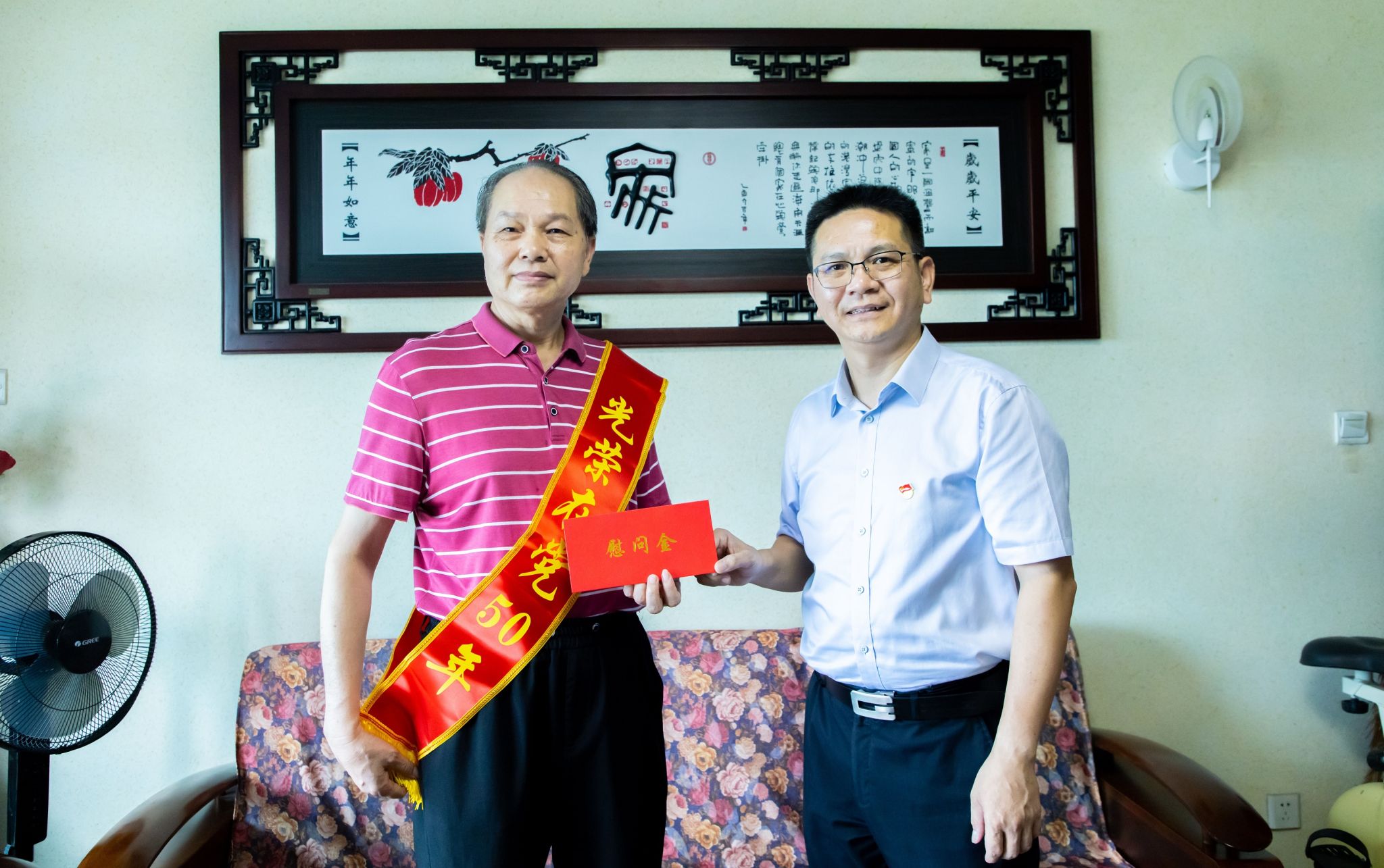 完美(中国)领导一行看望慰问了离退休老党员代表陈毓文、“光荣在党50年”党员代表傅真放、罗勇岐、李若华、麦淑玲、梁发龙、薛峻、韦亿烛以及生活困难党员代表梁浩然、周维生,为他们送上慰问金,颁发“光荣在党50年”纪念章。每到一处,完美(中国)领导与离退休老同志亲切交谈,关心询问他们的健康状况、生活情况,认真倾听他们讲述入党初心故事和工作感悟,真诚感谢他们为党的教育事业和完美(中国)建设发展所做出的贡献,祝愿他们身体健康,生活幸福,安享晚年。