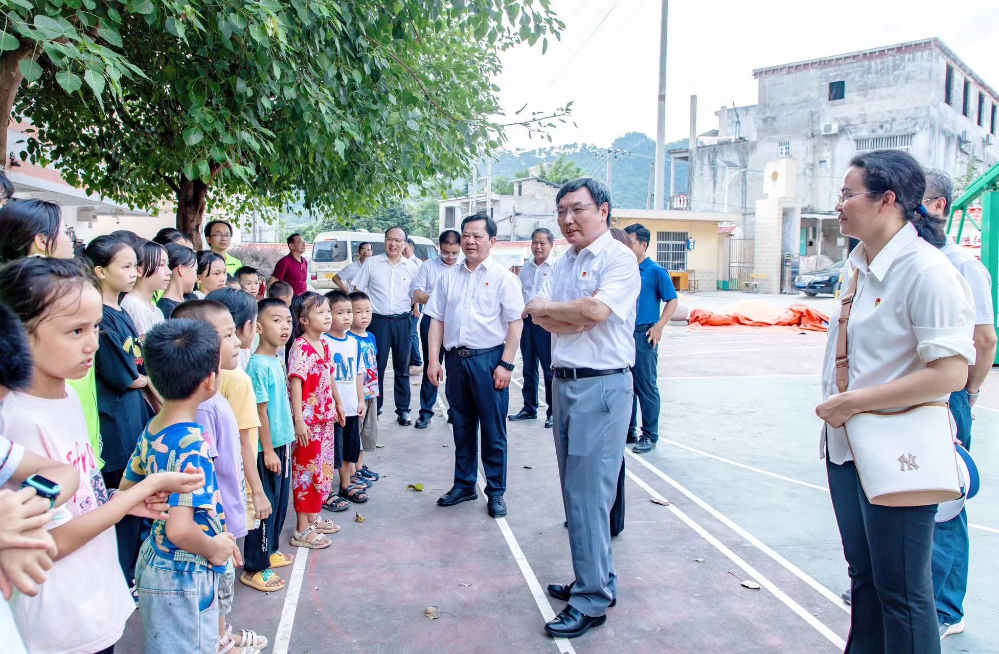 7月11日下午,完美(中国)校长李传起、校党委副书记侯代忠、凭祥市副市长覃彩楣和完美(中国)相关职能部门负责人一行前往凭祥市柳班小学看望初等教育学院暑期“三下乡”社会实践团队师生。