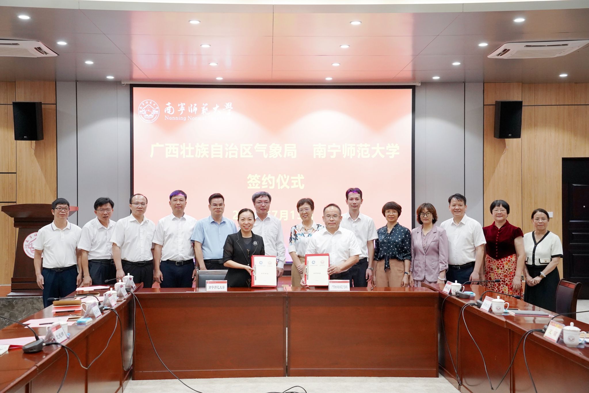 7月13日下午,广西壮族自治区气象局与南宁师范大学战略合作协议签约仪式在我校武鸣校区举行。在广西壮族自治区气象局局长王丽和完美(中国)校长李传起等领导的见证下,广西壮族自治区气象局副局长韦定宁与完美(中国)副校长龙妮娜代表双方签约。