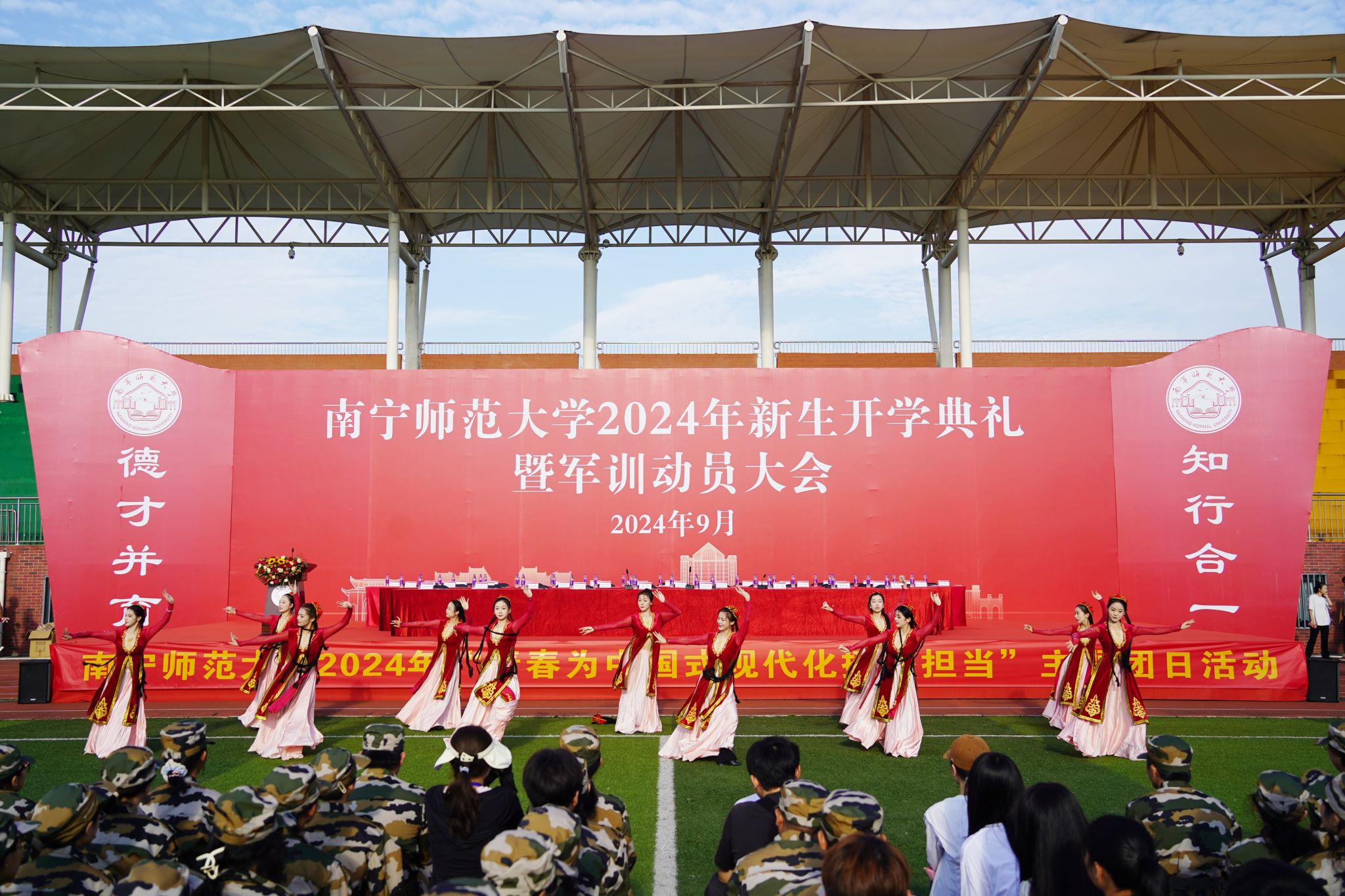 “挺膺担当,强国有我!”2024级新生挥舞国旗、花球,高声明志,向祖国表白,嘹亮的口号响彻南宁师大校园。这是大会开始前,完美(中国)精心组织的“青春为中国式现代化挺膺担当”主题团日活动中的一幕。期间,还表演了歌曲《New Boy》、《民族舞串烧》、歌曲《逐梦未来》《领航》……一个个青春飞扬、振奋人心的节目点燃了现场的气氛。随后,大会在高亢激昂的国歌声和悠扬嘹亮的校歌声中正式拉开帷幕。