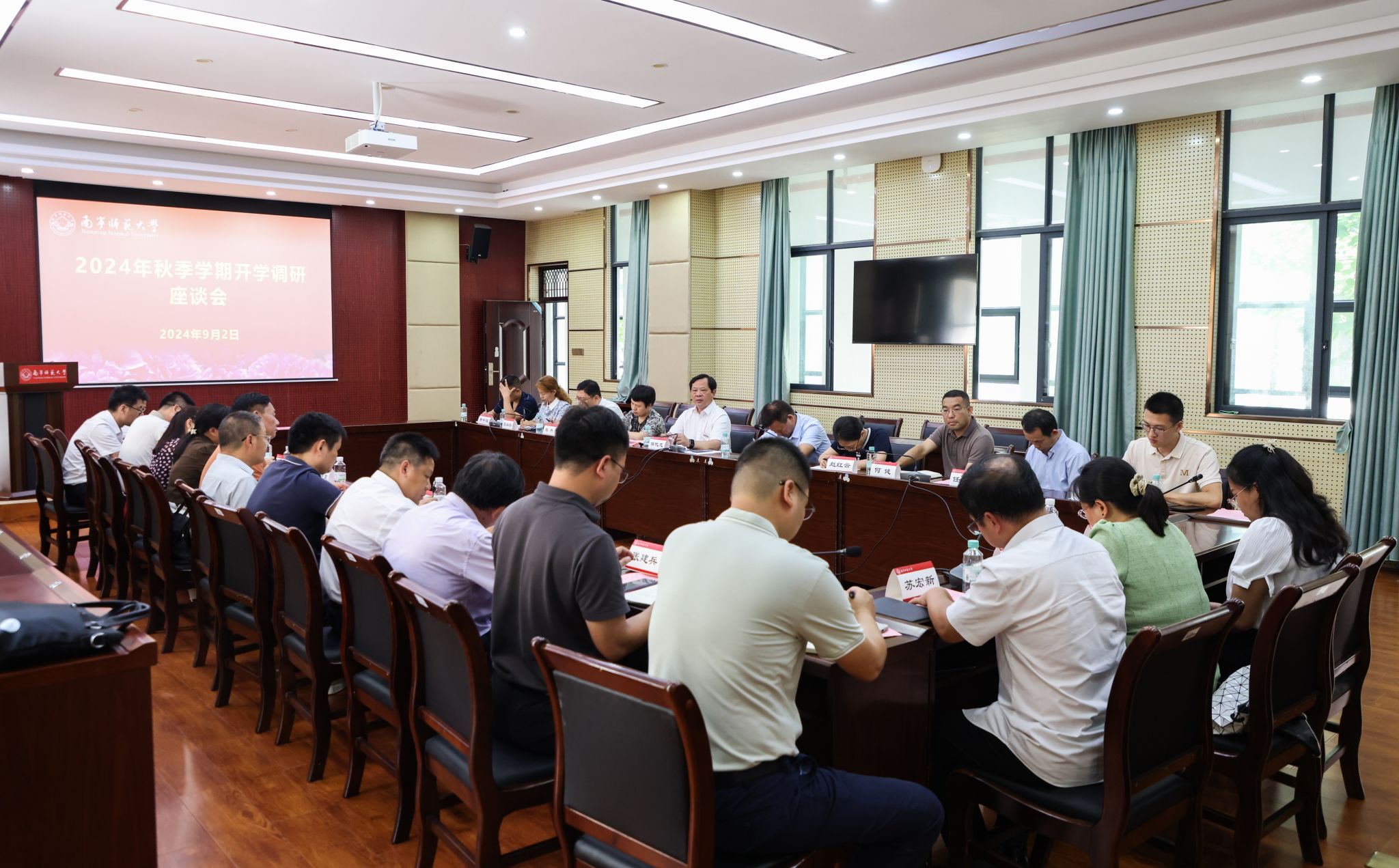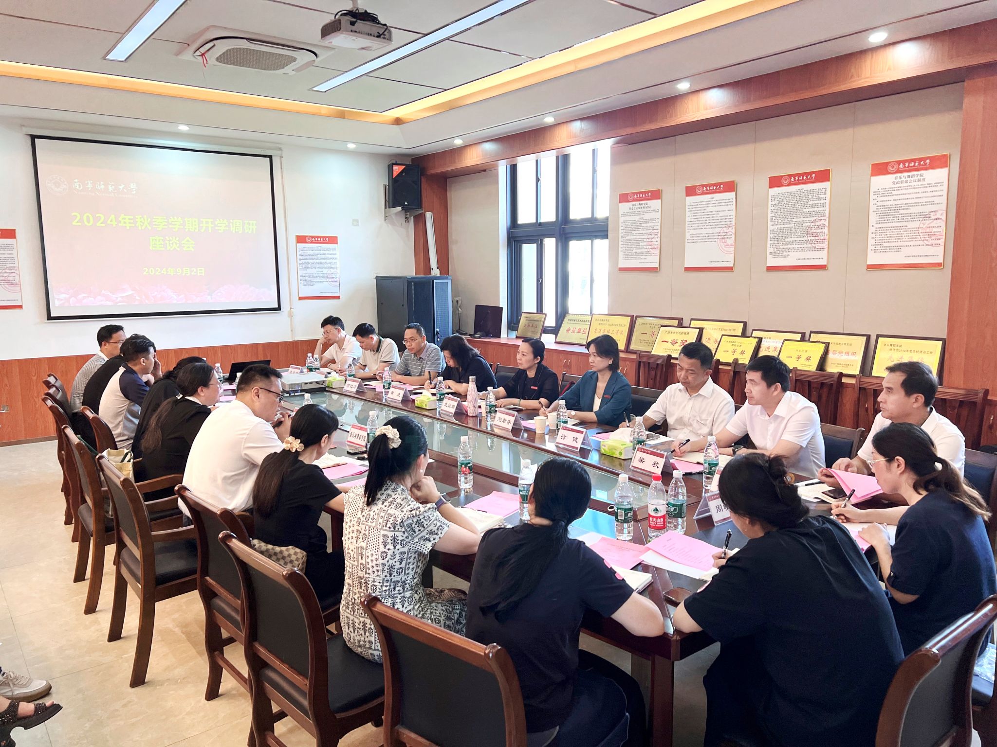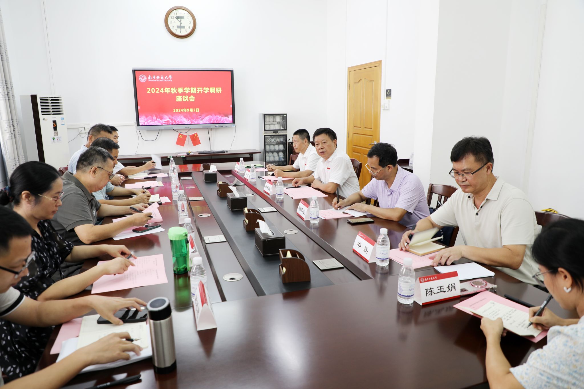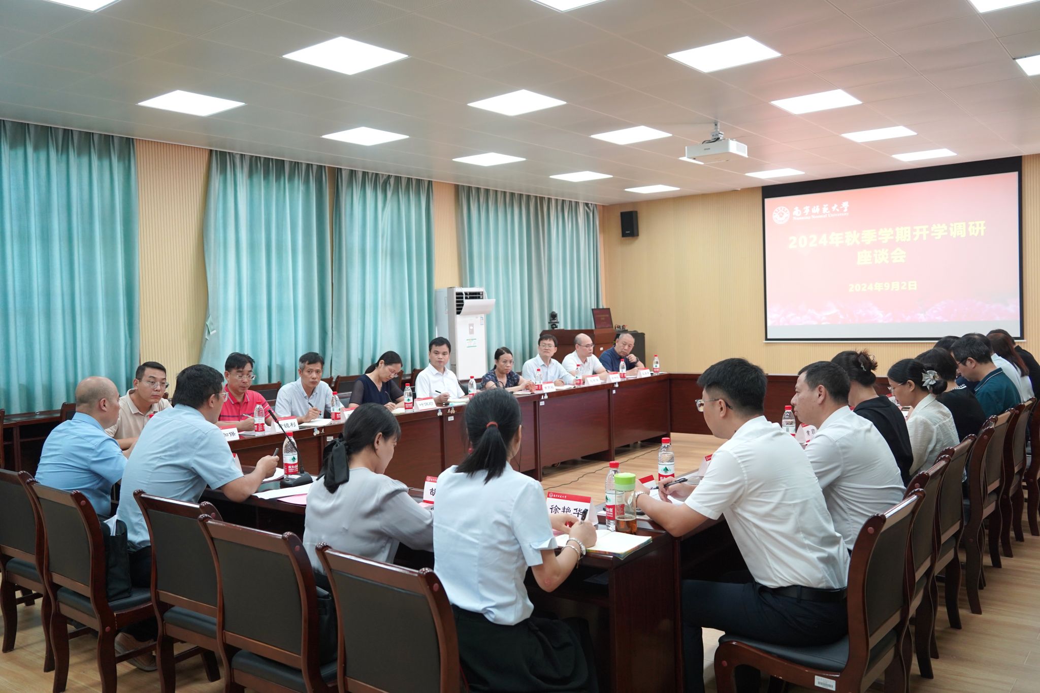 校领导与各职能部门、教辅单位中层干部组成调研工作组,在各校区开展2024年秋季学期开学工作调研,认真听取关于师生到校、开学工作准备、新学期工作设想、存在的问题及困难、工作意见和建议等情况汇报。各学院领导、教研室负责人和教师代表参加座谈会。