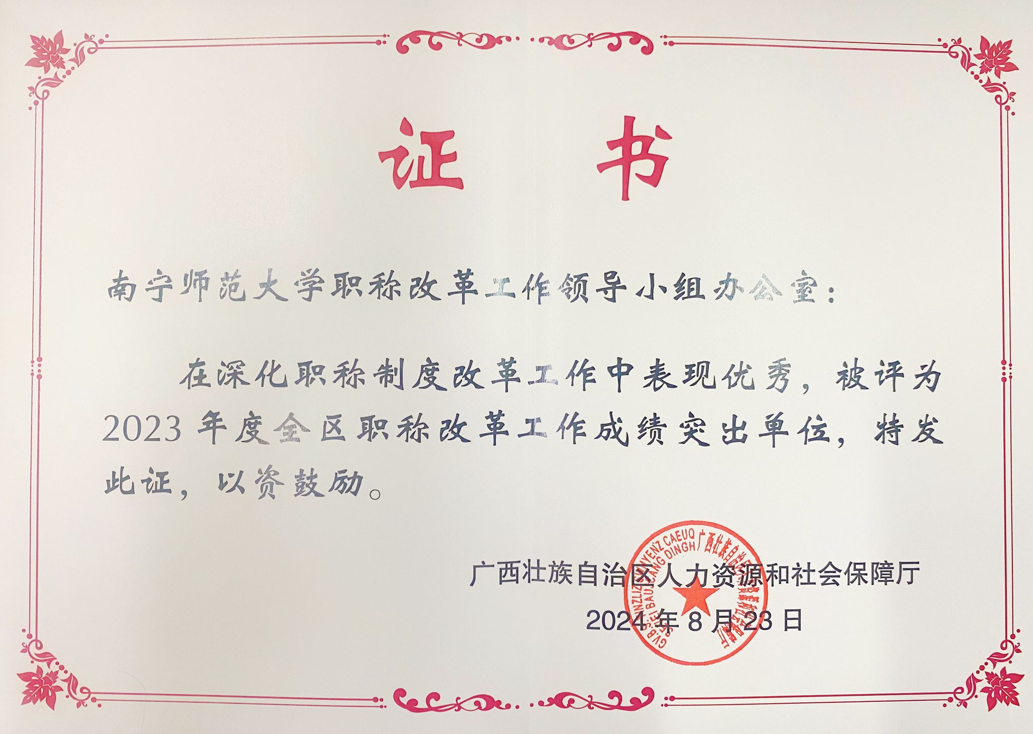 近日,自治区人力资源和社会保障厅集中表彰了2023年度全区职称改革工作成绩突出的23个单位和26名个人,我校职改办荣获“2023年度全区职称改革工作成绩突出单位”,全区6所高校职改办获此殊荣,这是近五年来我校职改办再次获此荣誉。
