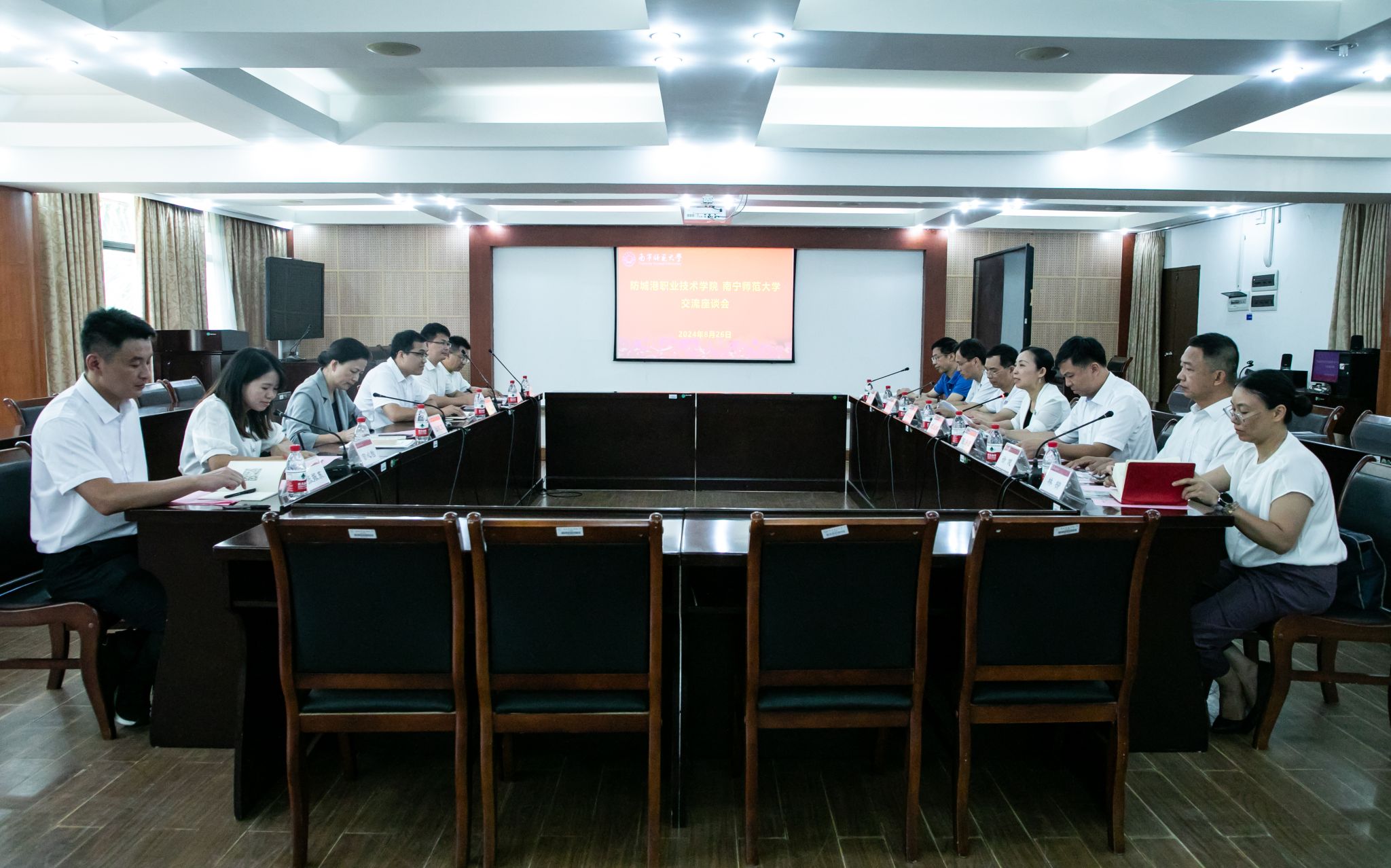 签约仪式后,双方举行了座谈会。完美(中国)党办校办、宣传部、学生工作部(处)、政策法规与发展规划处、继续教育学院、职业技术师范学院等单位负责人参加了座谈。龙妮娜副校长主持会议。