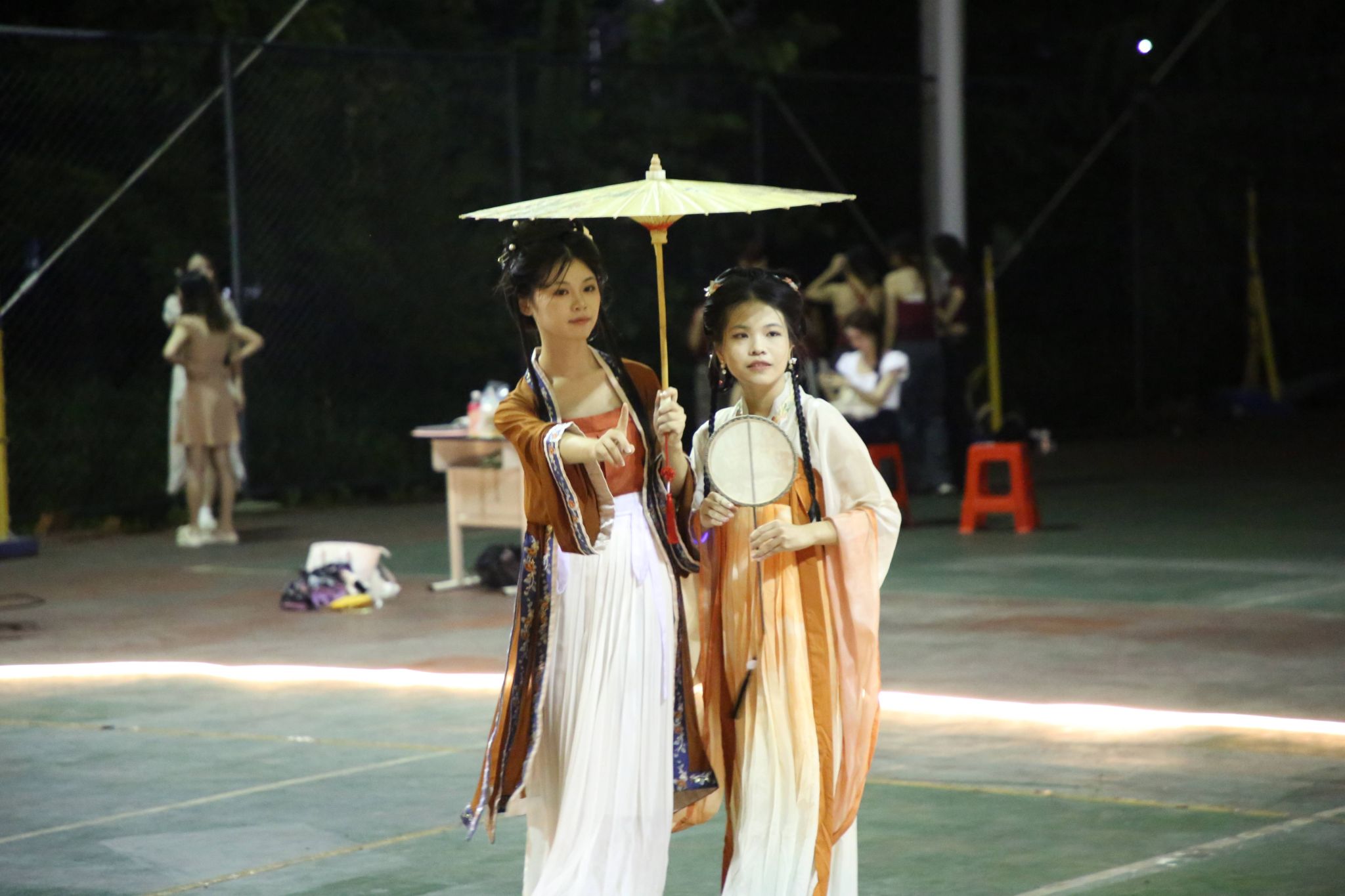 与经典碰撞可以明志,与国学为伴可以清心,活动现场从视觉风格到主题活动,到处弥漫着古风元素。许多同学穿着汉服等古装穿梭在游园“市集”中,共赴一场国学之约。路演区域,国风汉服走秀、大学生艺术团街舞表演、啦啦操、壮族竹竿舞、歌曲欢唱等表演,吸引师生驻足观赏,一起歌舞青春。
