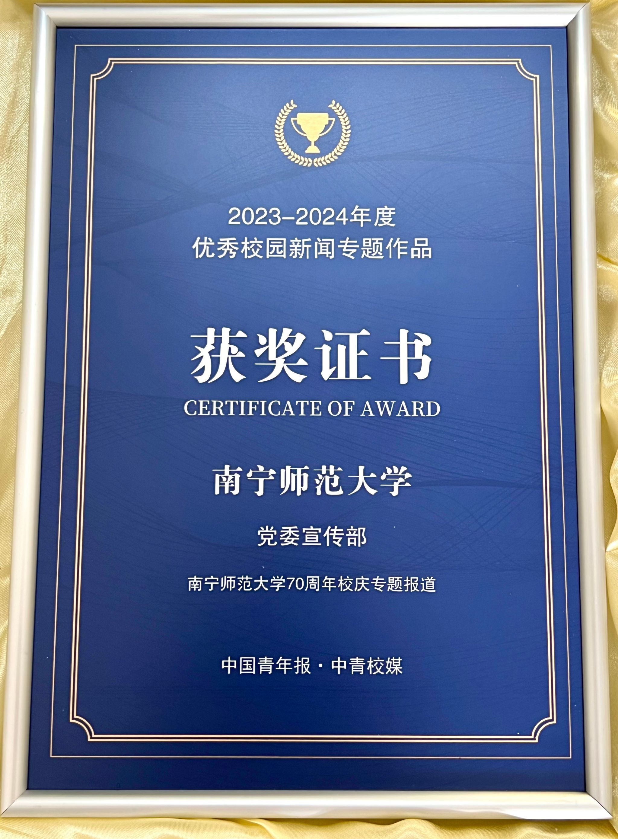 近日,由中国青年报社·中青校媒主办的“寻找2023-2024年度高校可视化专题作品”活动获奖名单公布,我校党委宣传部报送的“南宁师范大学70周年校庆专题报道”成功入选中国青年报2023-2024年度优秀校园新闻专题作品。