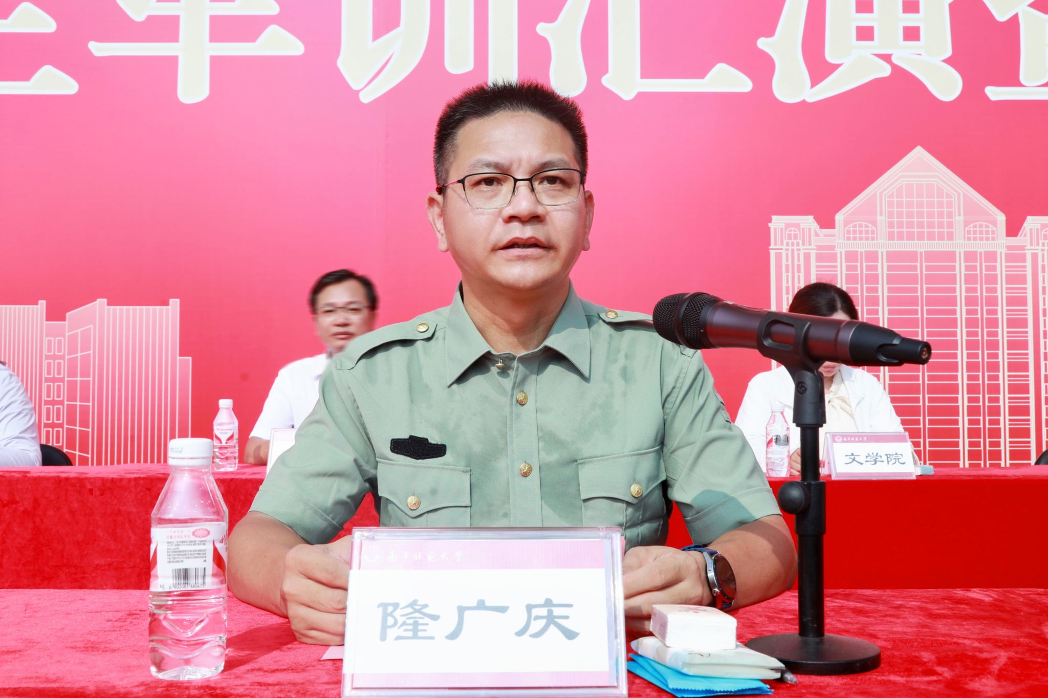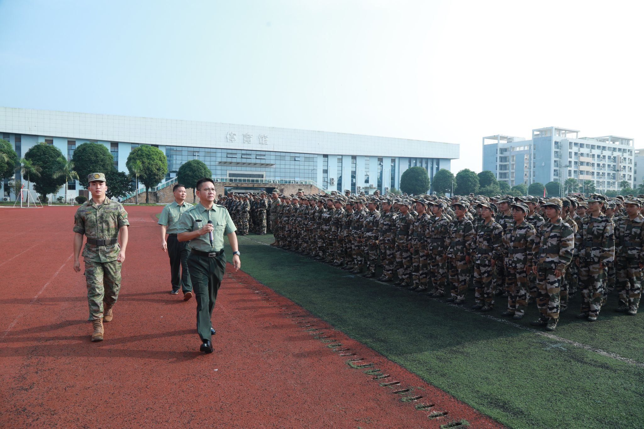 侯代忠、隆广庆分别对武鸣校区、五合校区的学生方队进行检阅。两个校区的参训方队有序入场,同学们步伐整齐、口号嘹亮,激情昂扬地展示训练成果,以饱满的精神接受检阅。
