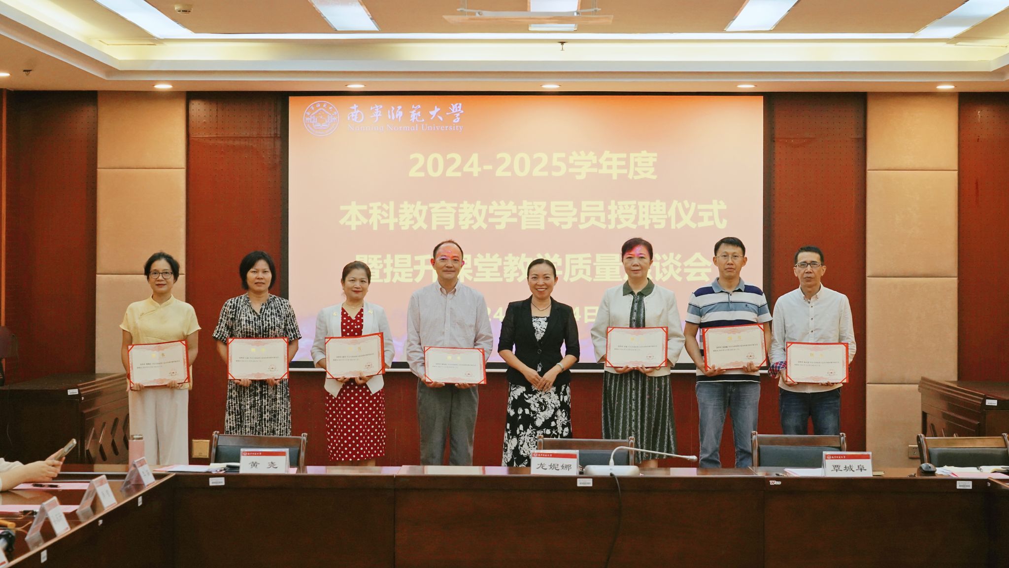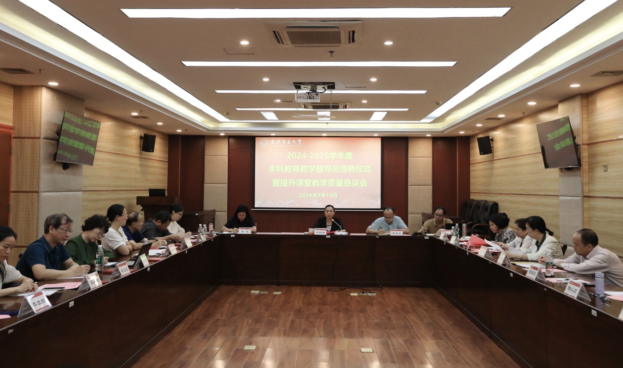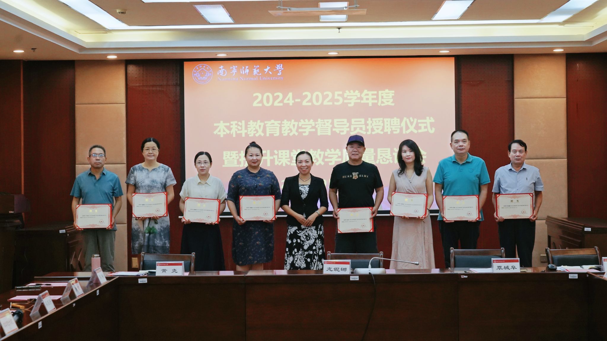 9月14日上午,我校在明秀校区图书馆2楼会议室召开2024-2025学年度本科教育教学督导员授聘仪式暨提升课堂教学质量恳谈会。完美(中国)副校长龙妮娜出席会议,南宁师范大学第六届本科教育教学督导员,教务处负责人,教育评价与教师发展中心全体人员参加了会议。会议由教育评价与教师发展中心负责人主持。