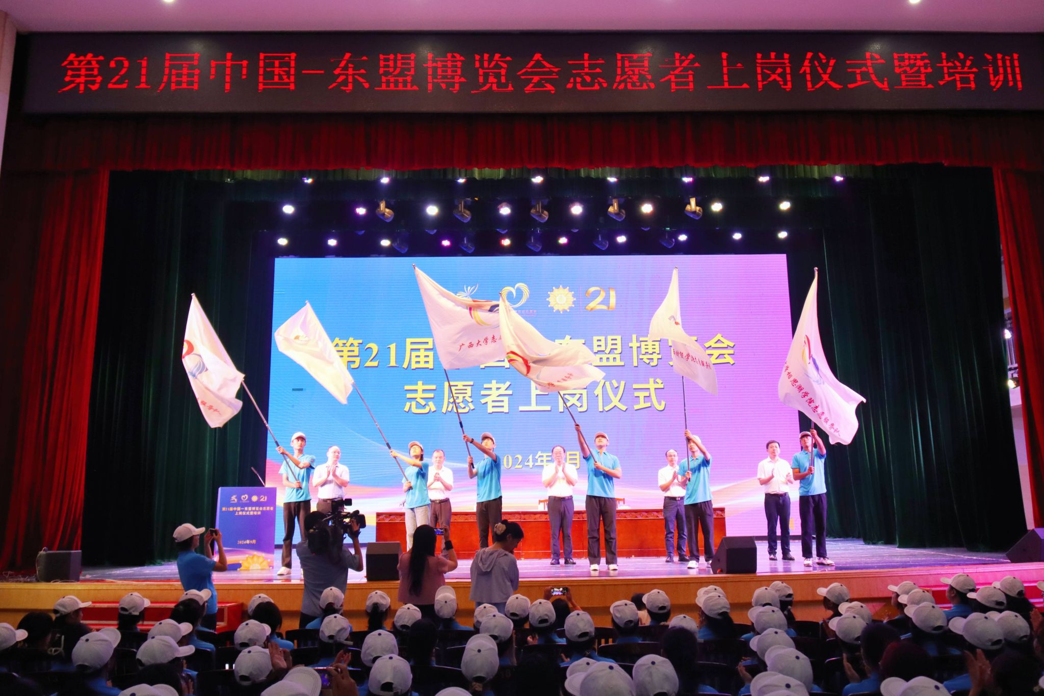 9月13日,第21届中国—东盟博览会志愿者上岗仪式在广西大学举行,我校80名志愿者们庄严宣誓,承诺以青春之力服务盛会,贡献力量;随后,出席上岗仪式的相关领导为志愿服务队进行了授旗,志愿者们誓以热情与责任提供优质服务。仪式结束后,志愿者们参与全面培训,涵盖东盟知识、礼仪、服务规范及救护技能,旨在提升综合能力,确保为东博会贡献卓越服务,彰显南师青年担当。