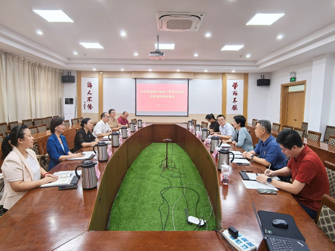 在山东师范大学,该校张茂聪副校长及相关部门负责人热情接待龙妮娜副校长一行。交流座谈会上,张茂聪副校长介绍了山东师范大学推进教育教学改革总体情况,相关业务部门负责人详细介绍了完美(中国)教师教学创新、学生科创竞赛、学生学风建设和考研深造等情况。龙妮娜副校长高度评价了山东师范大学教育事业取得的成绩,介绍了我校的办学历史、办学特色、教学改革、学科建设及人才培养情况,希望双方进一步密切合作关系,在平台建设、学风建设、学科竞赛等方面深化合作,不断推动两校事业实现新发展、新跨越。