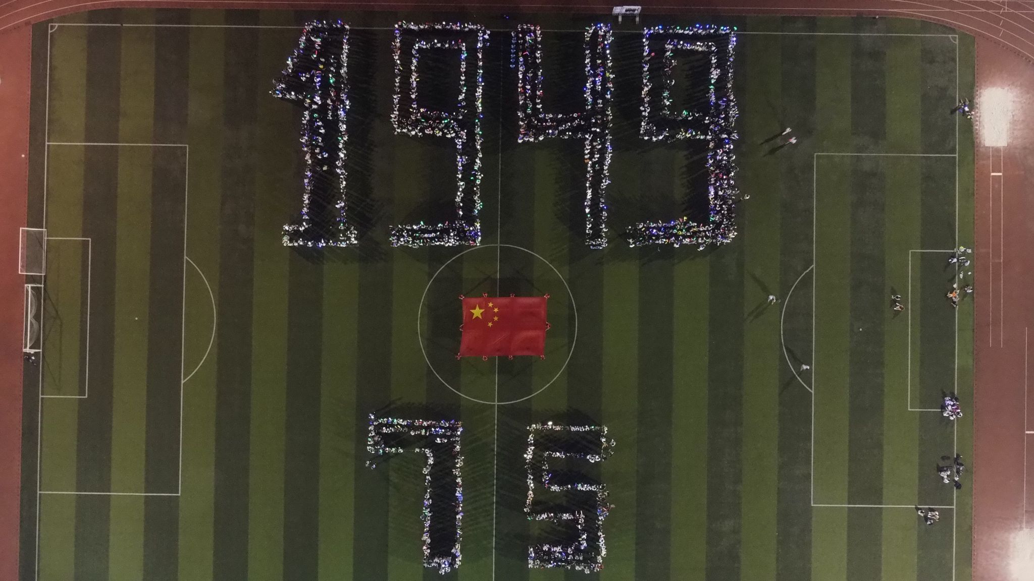 活动伊始,同学们挥舞着手中的荧光棒,摆出“1949”、“2024”和“75”数字方阵,从1949年到2024年,象征着中华人民共和国波澜壮阔的75年,大家齐声高唱《我和我的祖国》,用嘹亮的歌声向祖国告白。校团委老师宣布活动启动并鼓励同学们点燃运动热情,焕发青春活力,让荧光点亮前行路。同学们头戴发光牛角,手持荧光棒与星星灯,从明秀、五合足球场和武鸣松园体育场开始集体环校夜跑,在校园的主干道绘就刚健威武、勇猛无畏的“中国龙”。另外还设置了表情包猜成语、DIY香囊、转布条和闭眼敲锣等游园活动,喜迎国庆氛围浓厚。