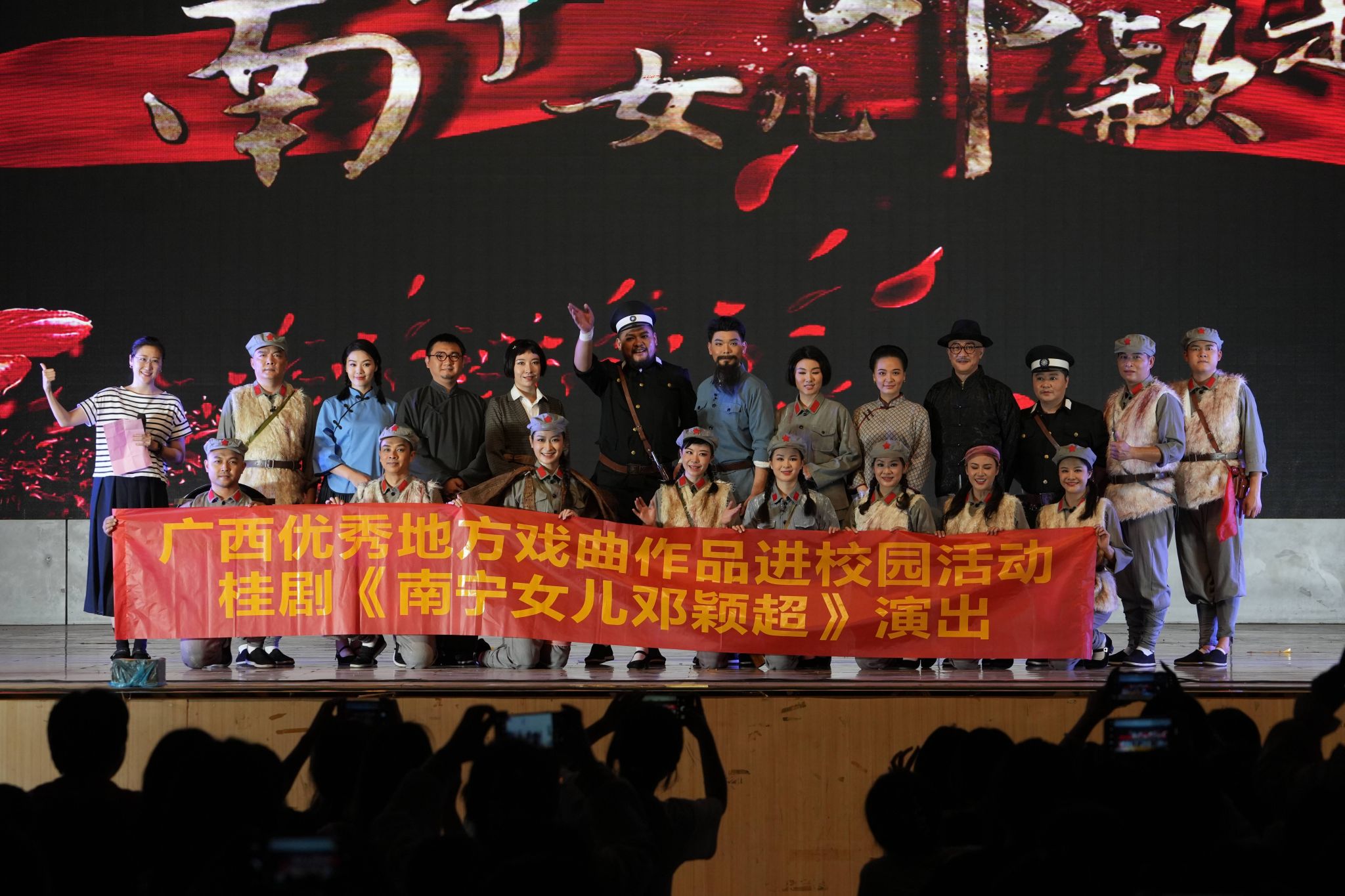 10月9日晚19:30,广西壮族自治区戏剧院广西优秀地方戏曲作品走进南宁师范大学,桂剧《南宁女儿邓颖超》在我校五合校区体育馆精彩上演。五合校区各学院教师代表、学生代表共计2500余人参加,会场座无虚席,师生沉浸在桂剧表演的艺术魅力之中。