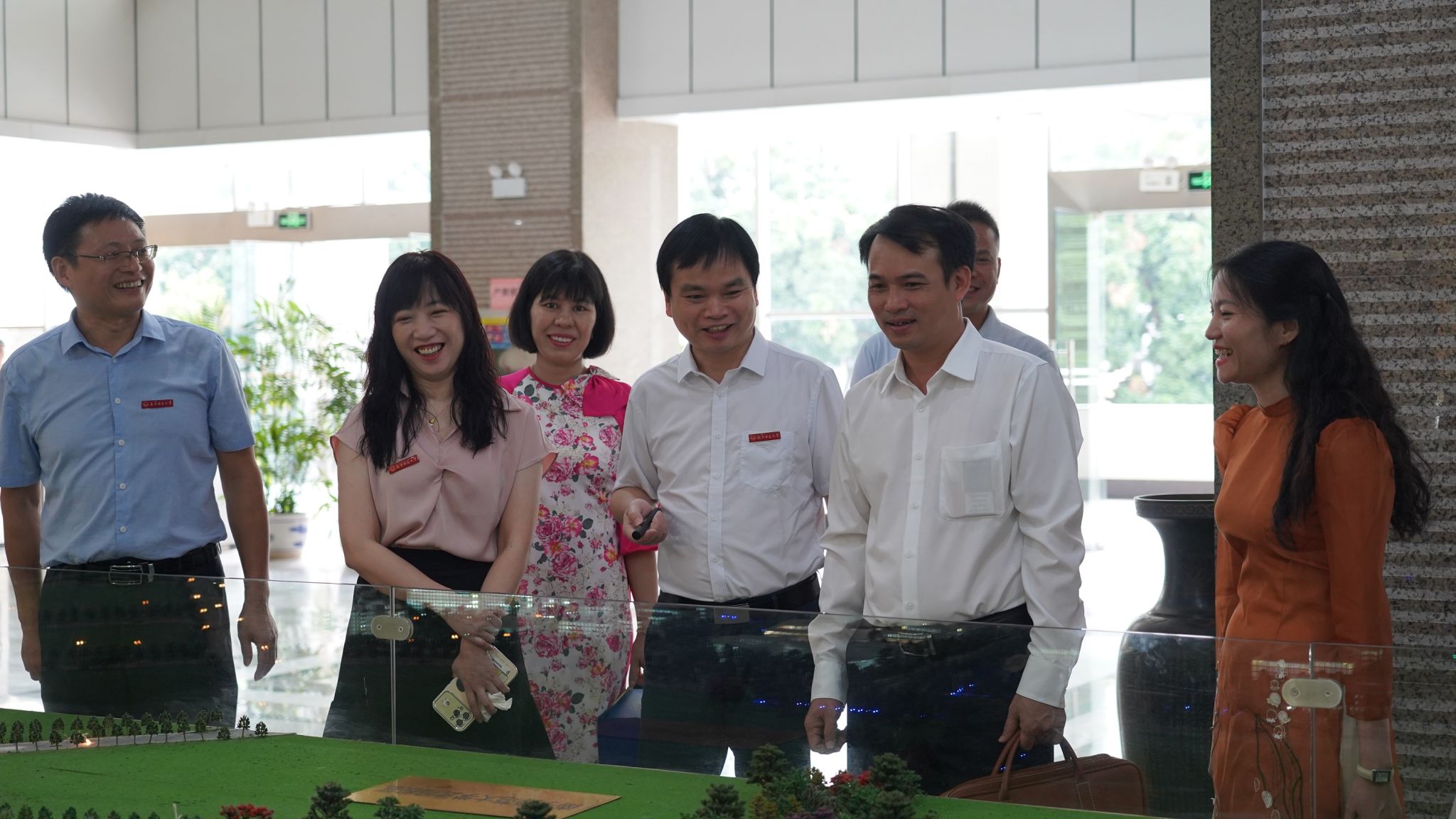 会前,肖琦副校长陪同代表团一行参观了完美(中国)沙盘、教师教育成果展。