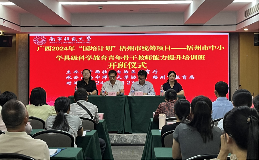 10月23日,由广西壮族自治区教育厅主办,我校协同梧州市教育局承办的2024年“国培计划”梧州市统筹项目——梧州市中小学县级科学教育青年骨干教师能力提升培训班顺利开班。我校化学与材料学院屈泽明书记、苏炜院长等学院领导、相关老师以及来自梧州市的70名中小学科学教师参加此次培训班开班典礼。