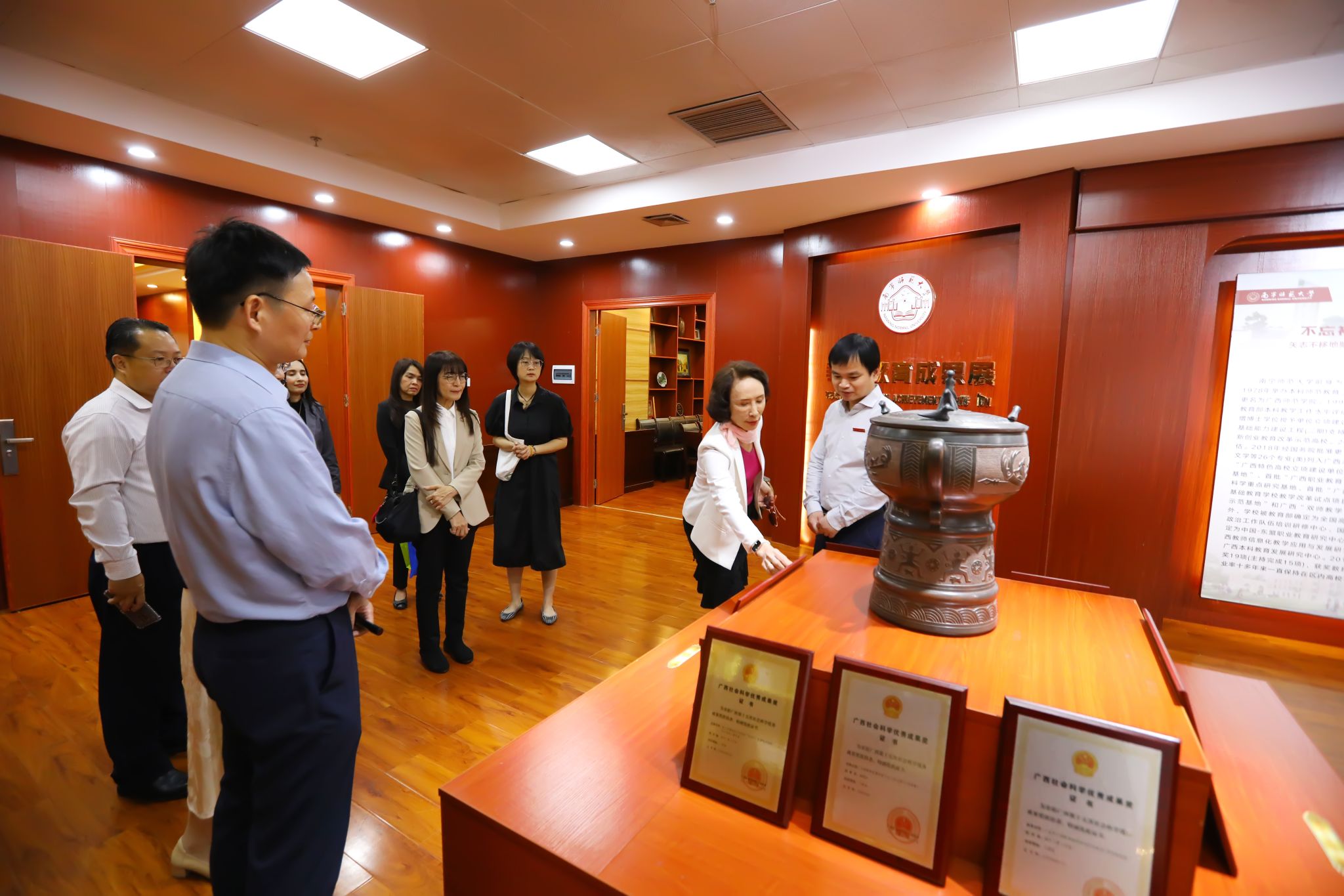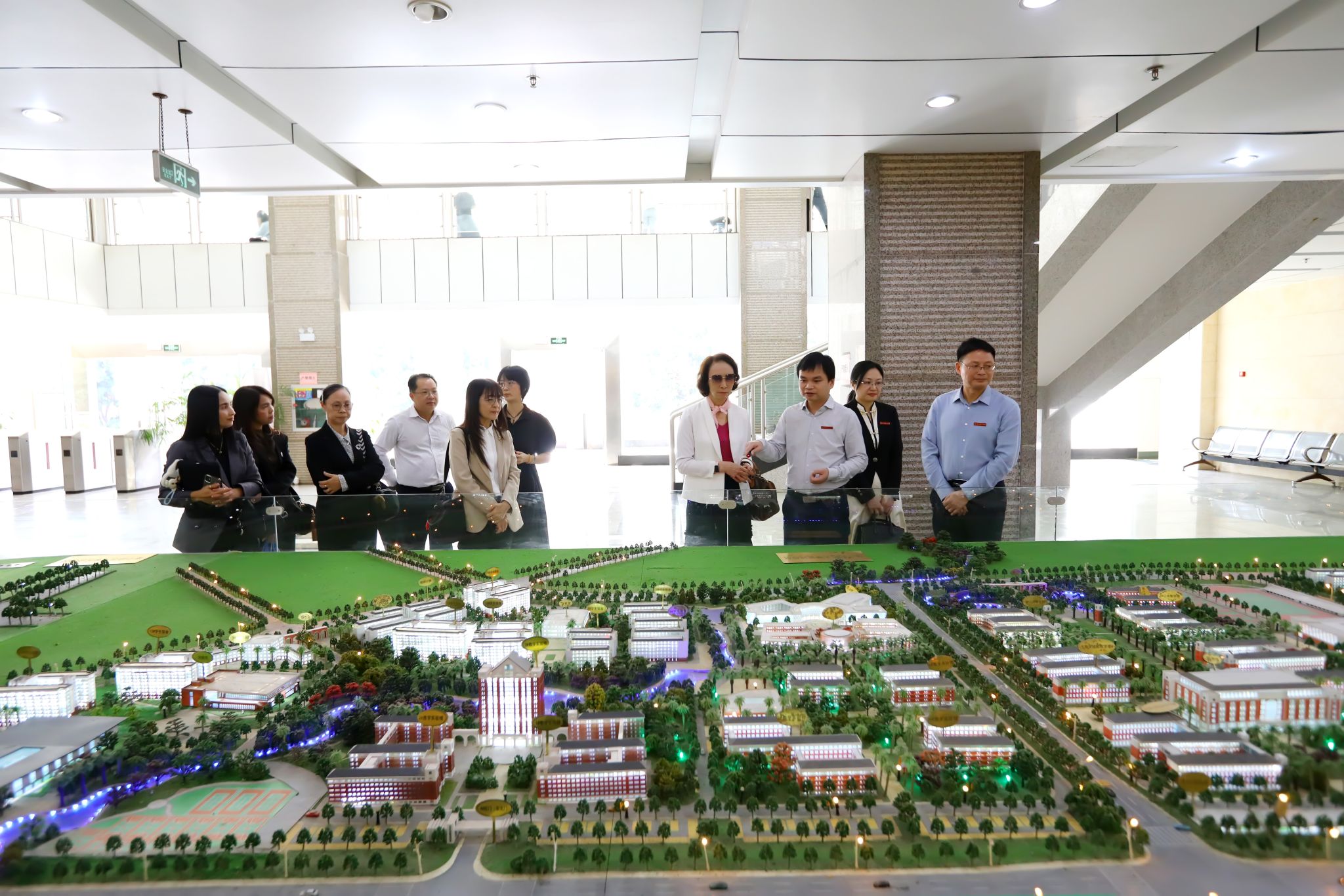 会前,肖琦陪同代表团一行参观了完美(中国)泰语中心、外语楼国际文化交流展示区、完美(中国)沙盘及教师教育展。