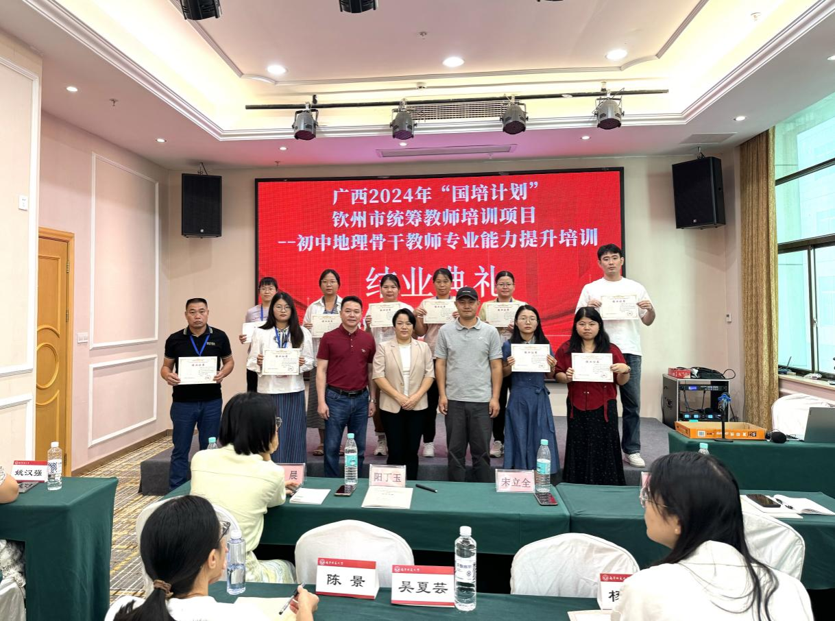 10月8日至25日,由我校承办的广西2024年“国培计划”钦州市统筹教师培训项目——初中地理骨干教师专业能力提升区内培训班在南宁顺利举行,钦州市委教育工委专职副书记陆杉、我校教师教育学院副院长黄明格、地理科学与规划学院院长卢远、院长助理卢炳雄、刘立昌副教授以及来自钦州市的60名初中地理骨干教师出席开班仪式。